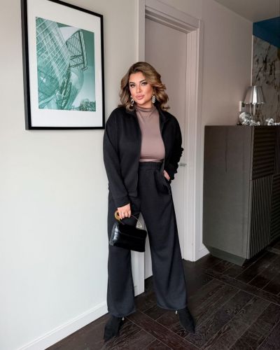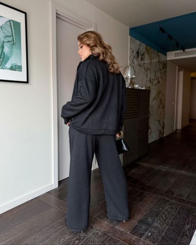 Осінньо-зимовий теплий прогулянковий костюм. Кофти з довгим рукавом, попереду змійка. Штани на гумці з кишенями, розширені донизу.