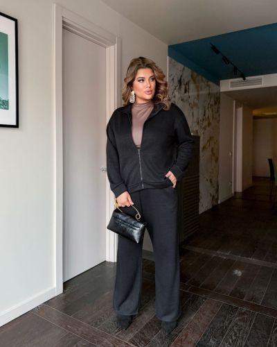 58-60 Об'єм грудей - 140 см, Довжина кофти - 68 см, Довжина рукава кофти - 62 см, Об'єм талії штанів - 90 см (тягнеться до 138 см) Об'єм стегон - 138 см, Внутрішній кроковий шов - 72 см, Довжина штанів - 111 см