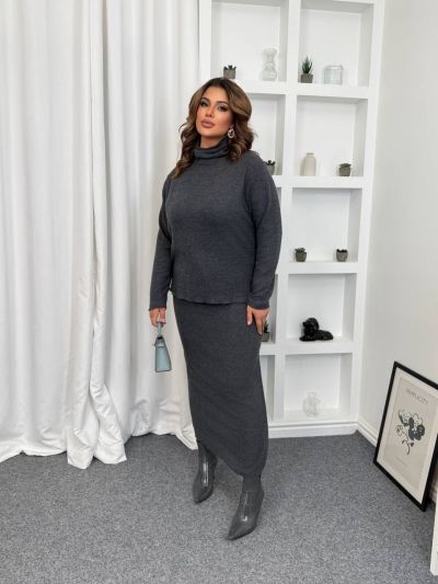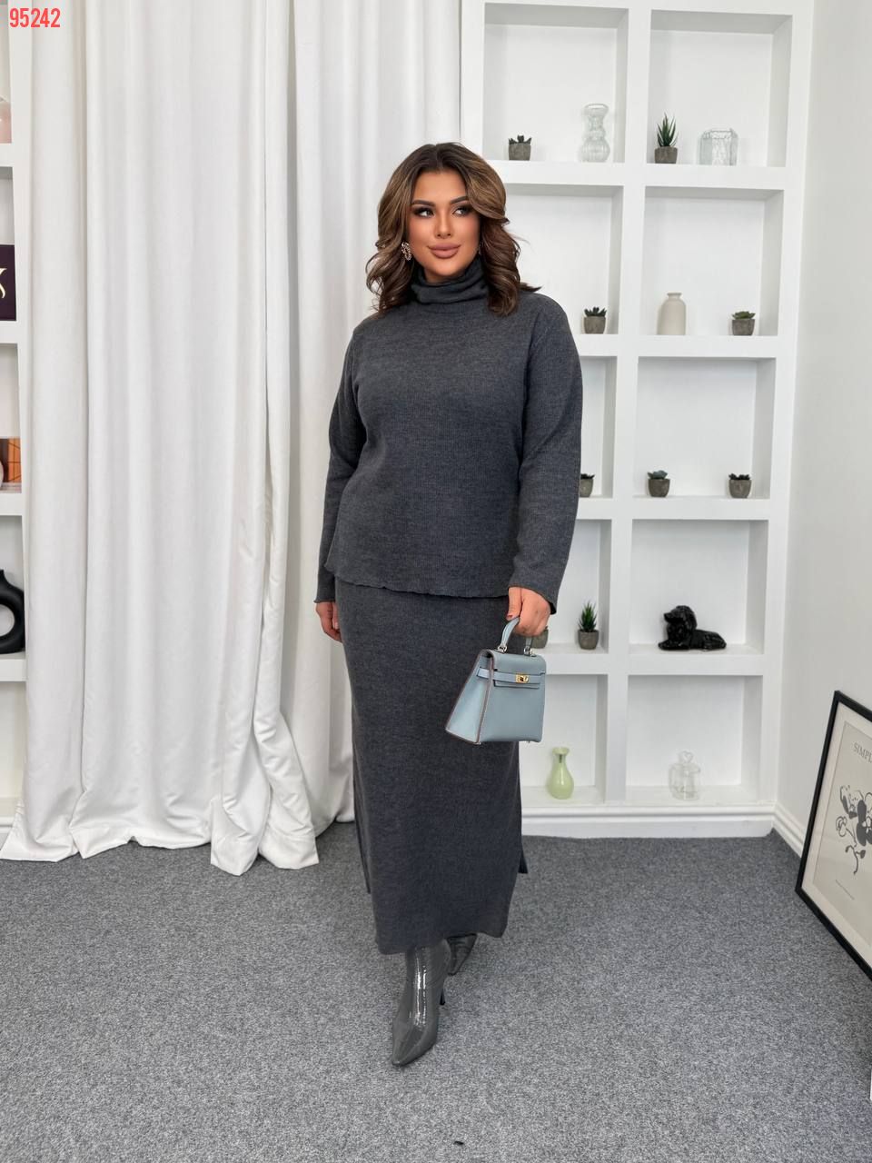 Колір: сірийЗаміри50-52 Ог 110, довжина кофти 60, талія тягнеться до 110, бедра 110, довжина спідниці 90