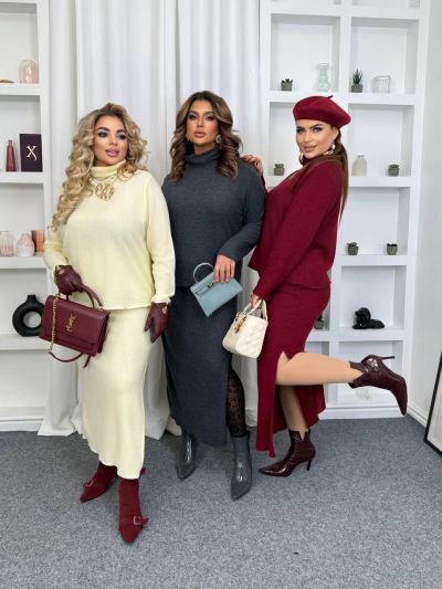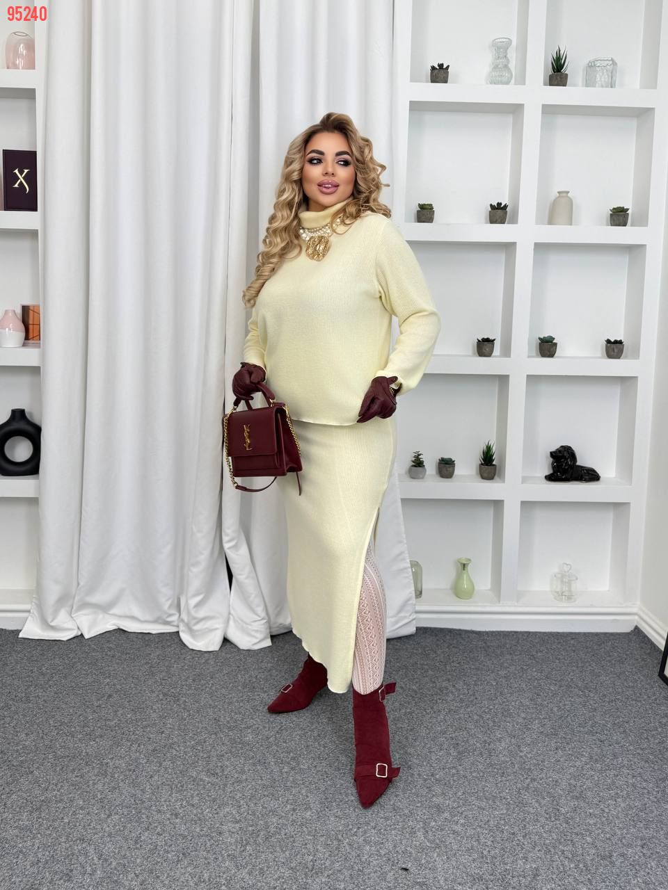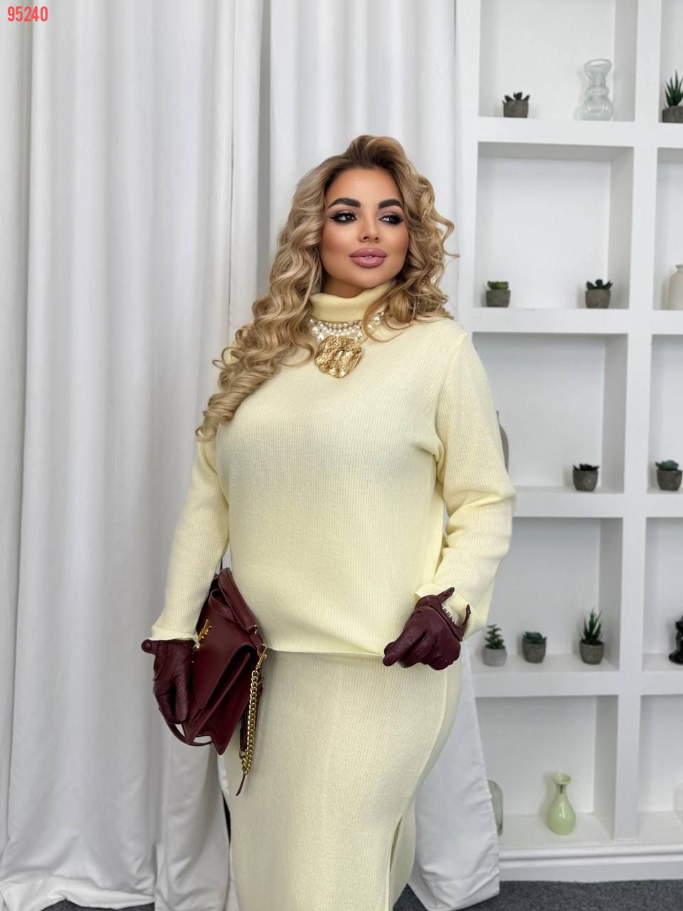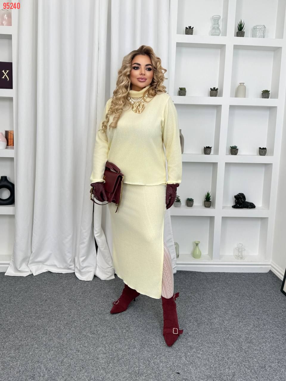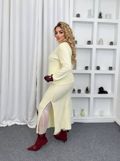 Колір: лимон Заміри50-52 Ог 110, довжина кофти 60, талія тягнеться до 110, бедра 110, довжина спідниці 90