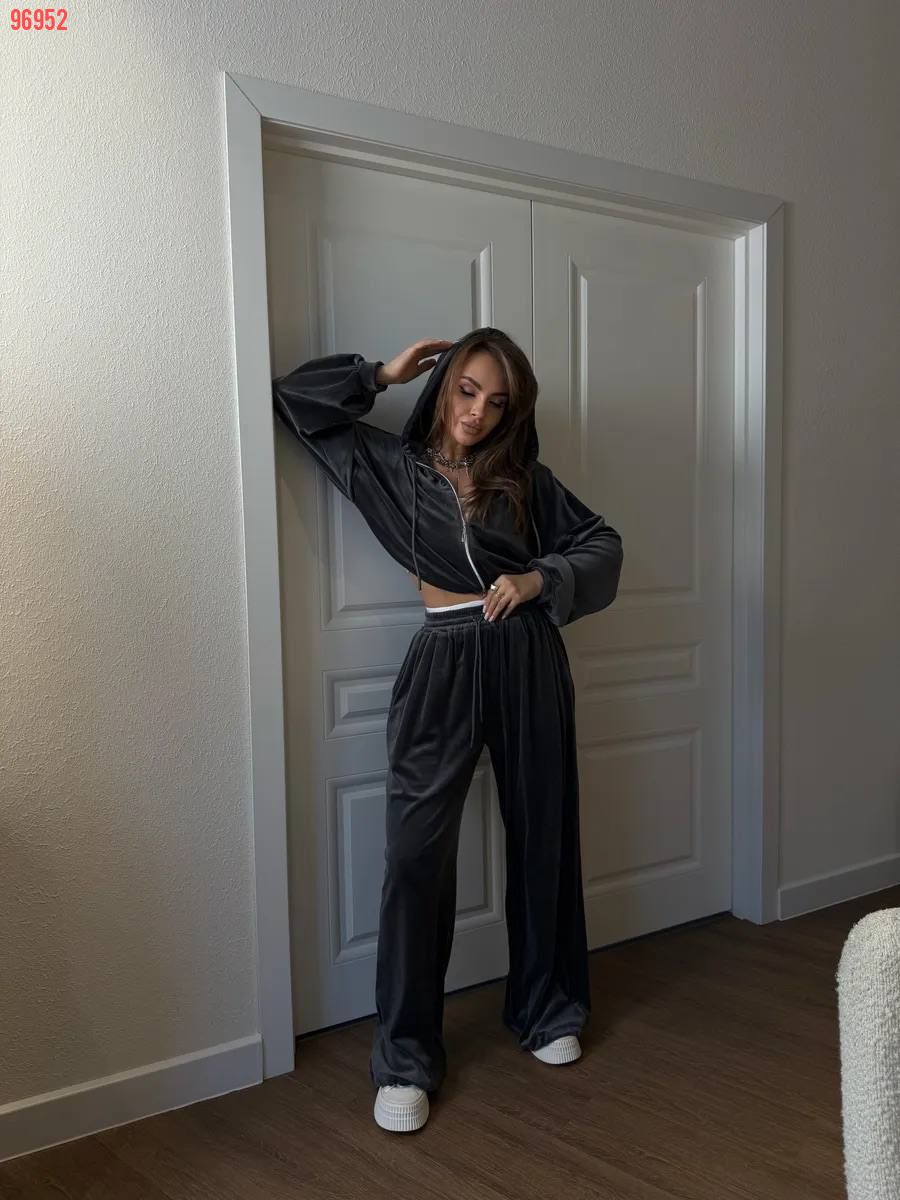 М'який і приємний до тіла костюм з велюру точно стане вашим улюбленцем, завдяки своїй універсальності.Кожну частину костюма можна носити окремо На штанах вшита біла резинка.