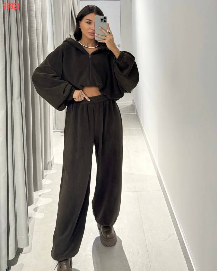 Костюм, який стане незамінним в твоєму гардеробіІ підійде для будь-який параметрів.Базовий, стильний та комфортний Штани та кофта на затяжках внизу.
