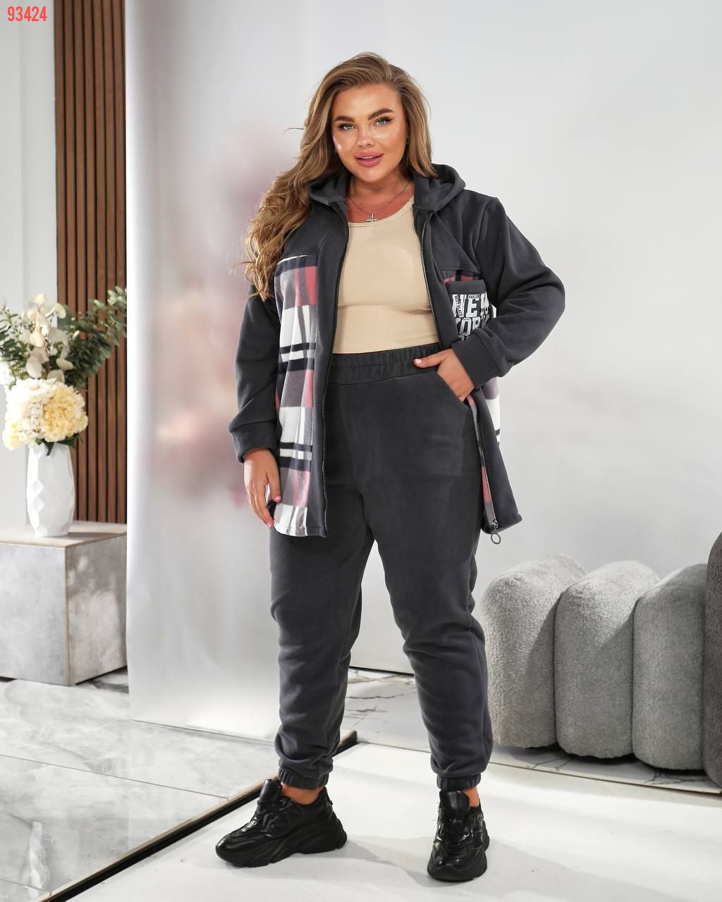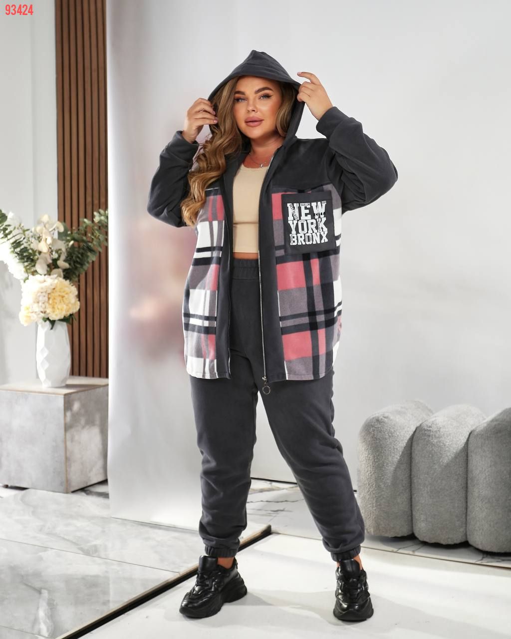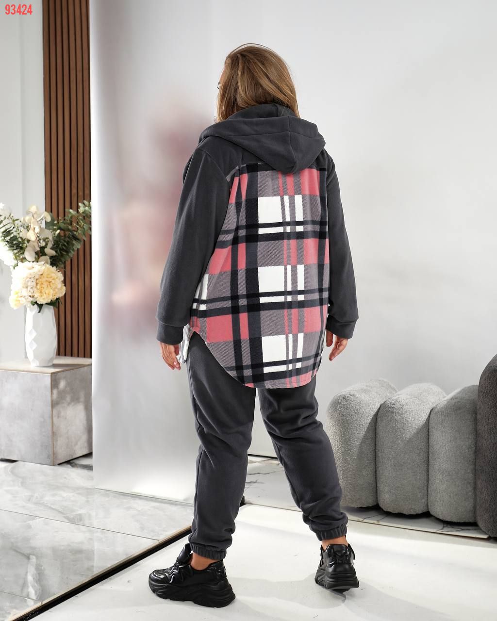Сорочка з капюшоном та модним клітинчастим принтом створює ефектний образ, а зручні штани дарують комфорт і свободу рухів. Чудово підходить для прогулянок, відпочинку та повсякденного стилю.