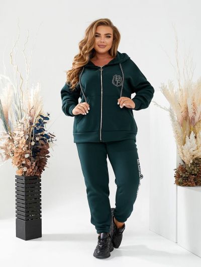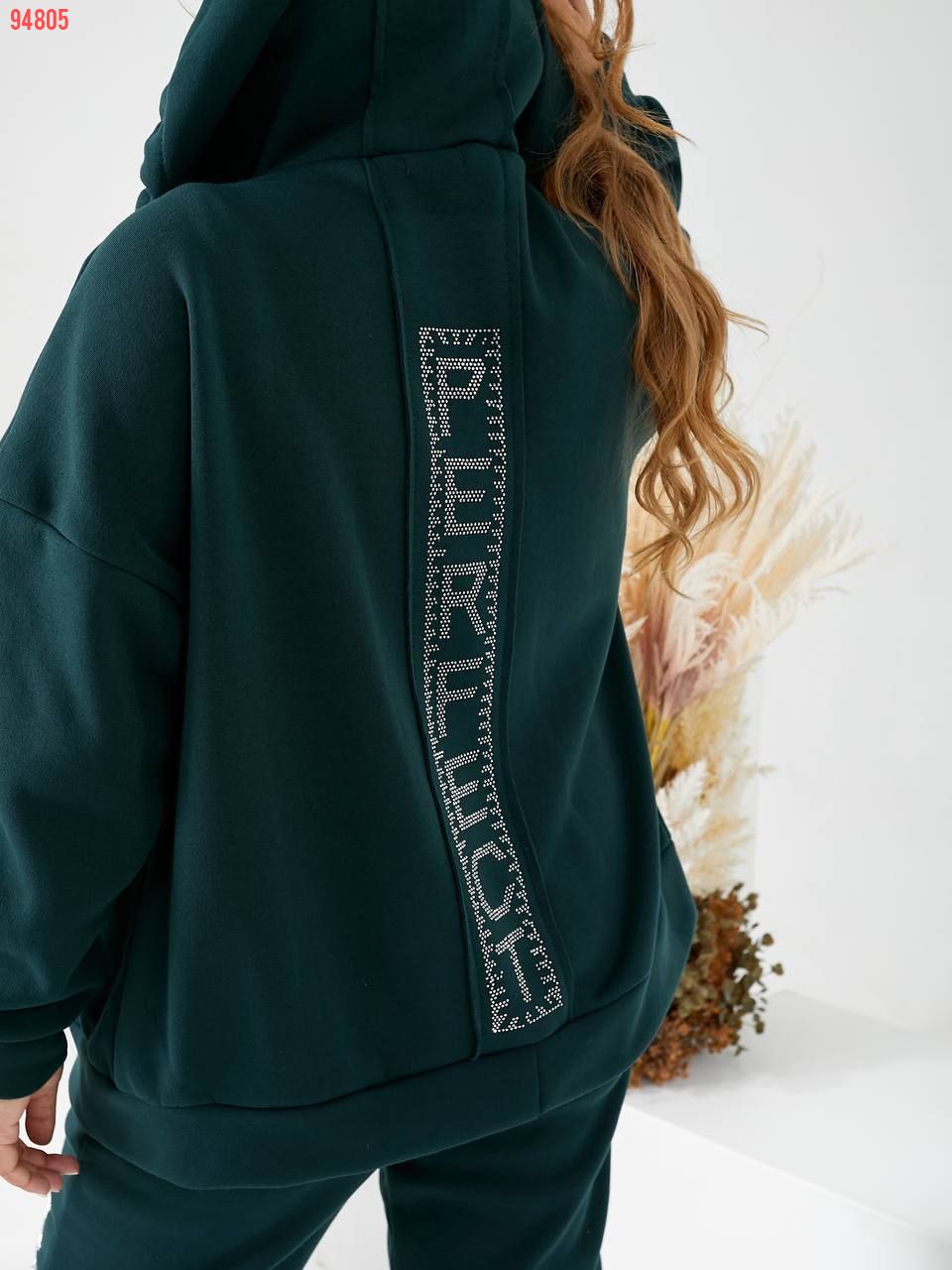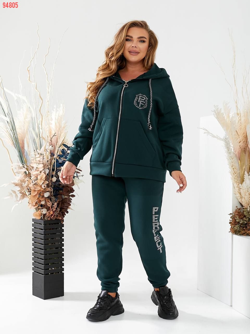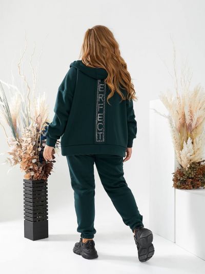 56-58: ог: 138 см, довжина кофти: 74 см, довжина рукава від горловини: 77 см. Штани з високою посадкою, пояс гумка 4 см, з боків кишені, декоровані камінням