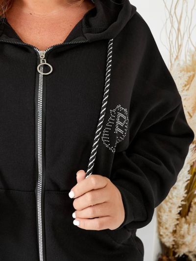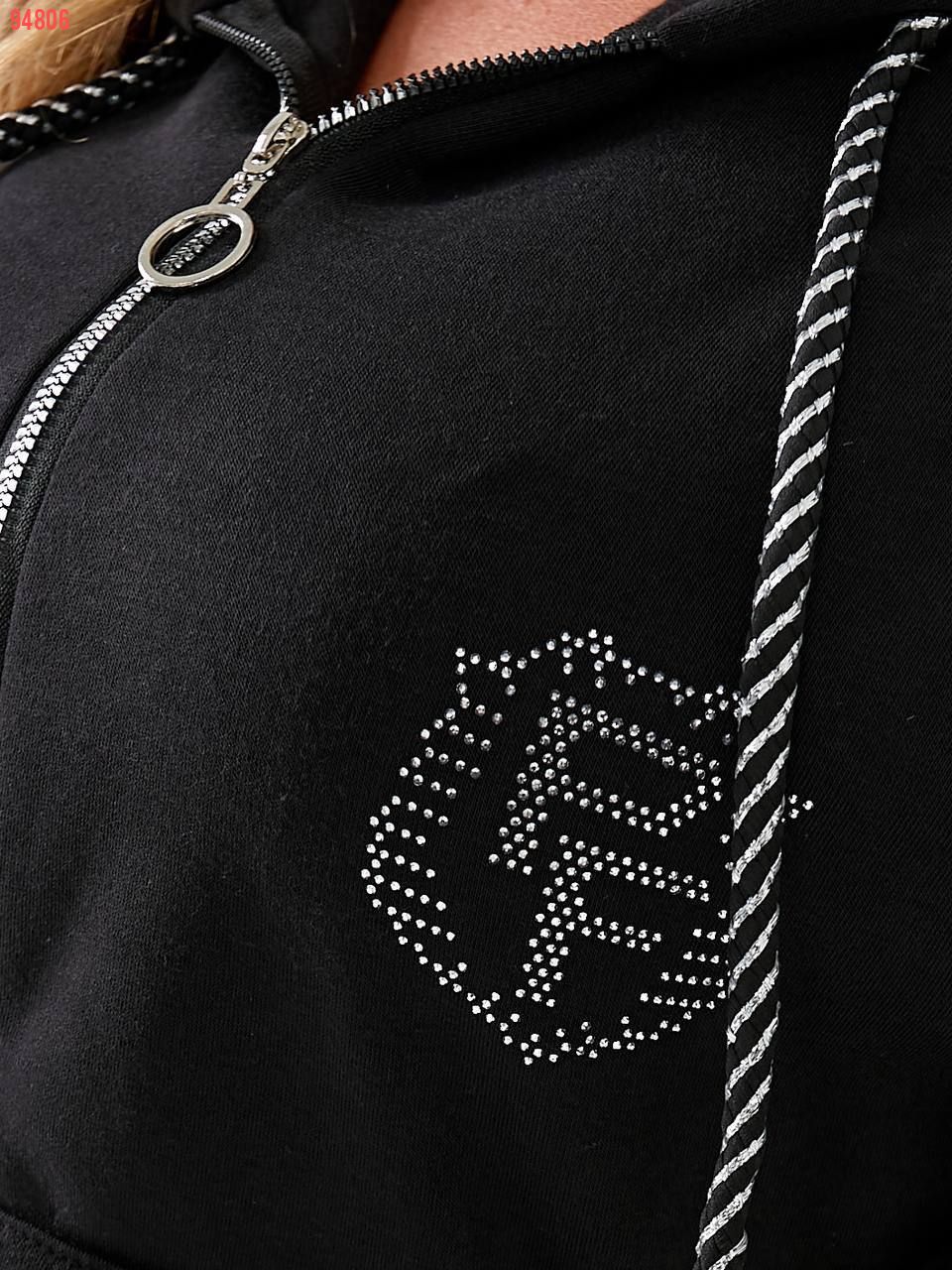 Кофта на змійці, декорована камінням, зручний глибокий капюшон, якісна фурнітура.