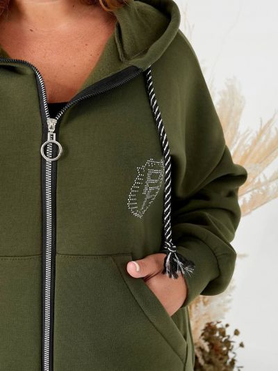 Кофта на змійці, декорована камінням, зручний глибокий капюшон, якісна фурнітура.