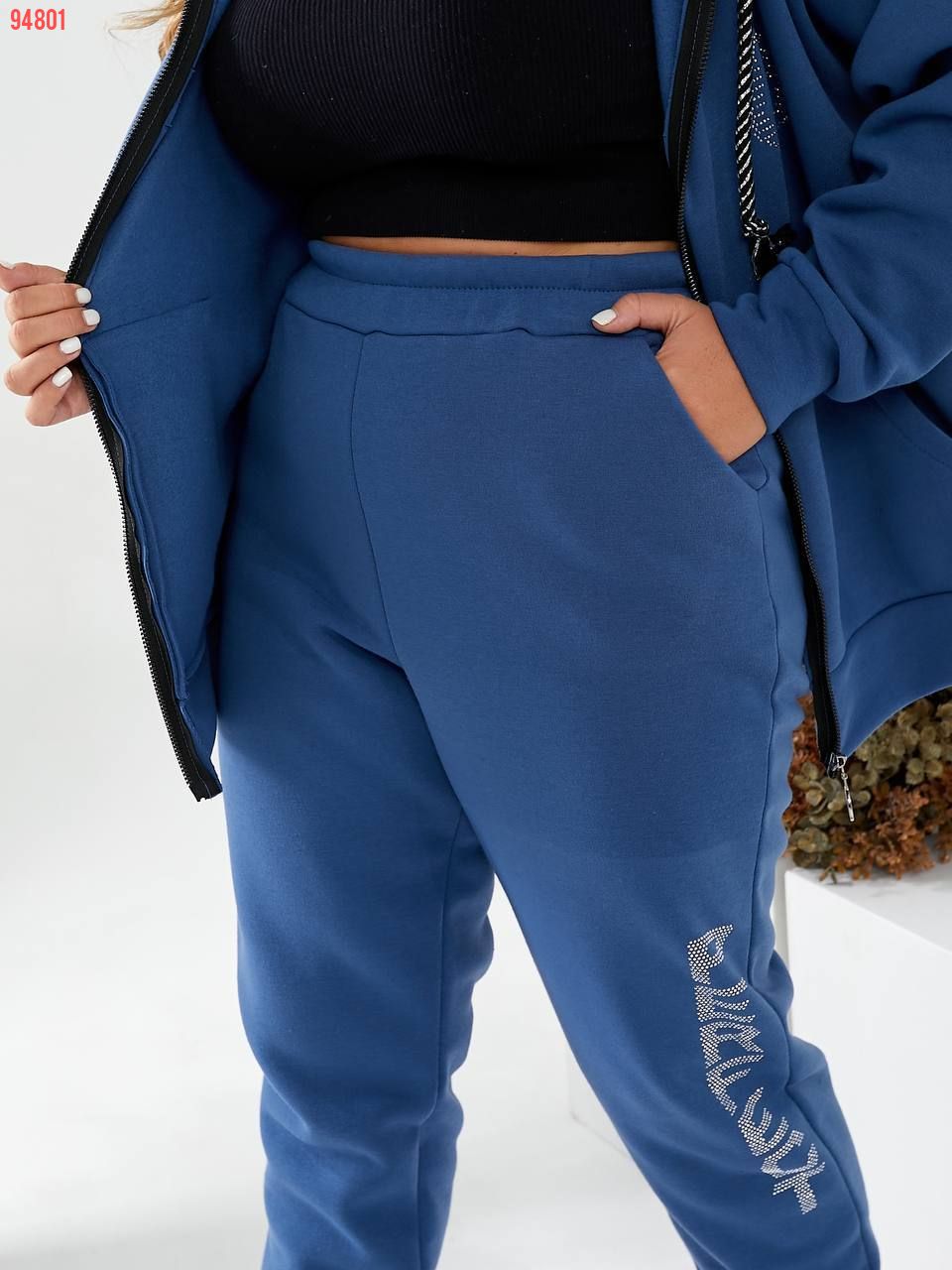 Штани з високою посадкою, пояс гумка 4 см, з боків кишені, декоровані камінням