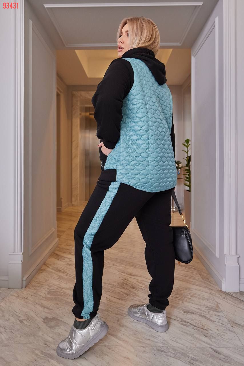 Стильний теплий костюм підійде на сезон осінь - зима, комбінована кофта на змійці із зручними кишенями кенгуру, зручний глибокий капюшон. Штани з високою посадкою, кишені, низ на манжеті (гумка)