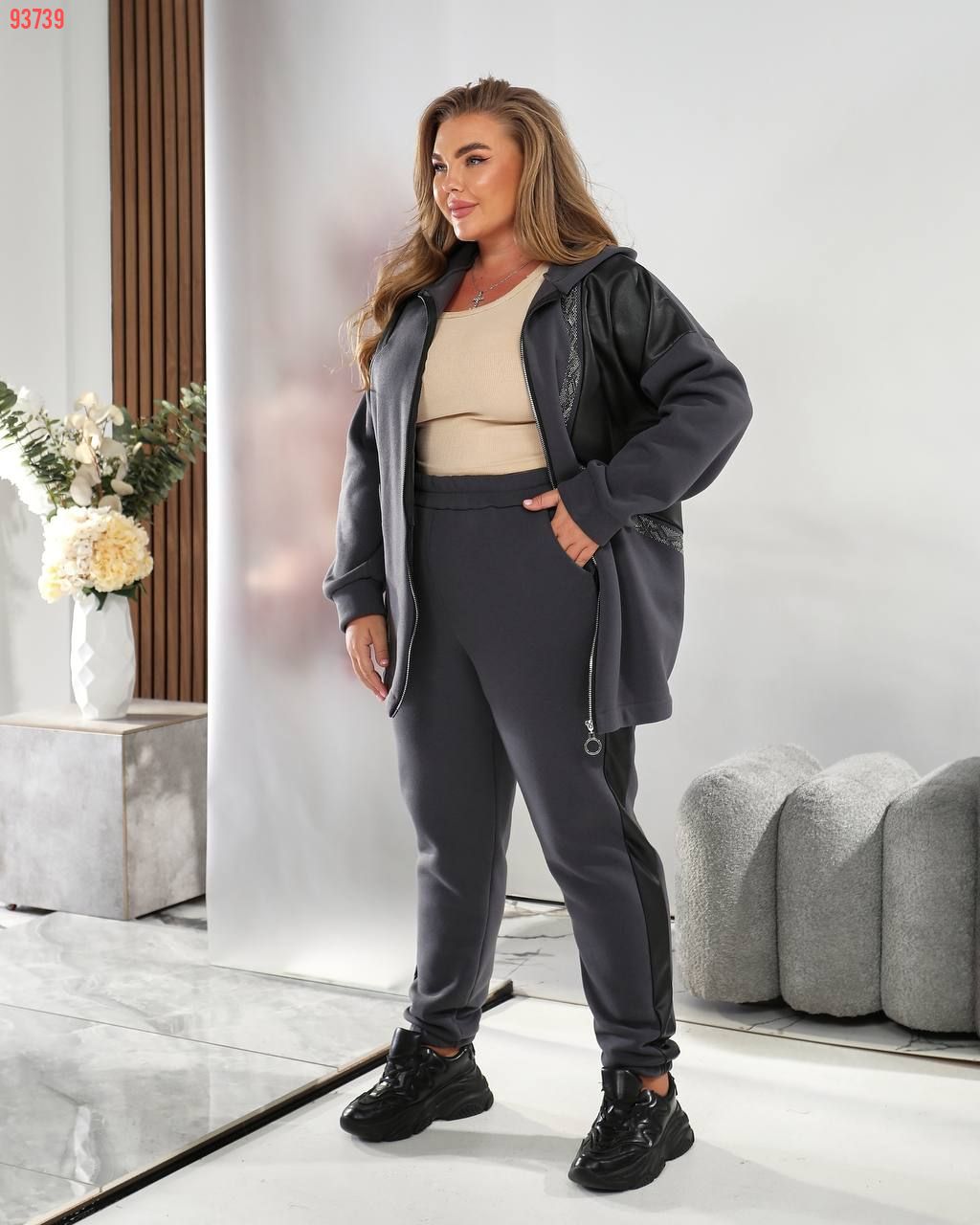 Тканина: трьохнитка на флісі + екошкіра