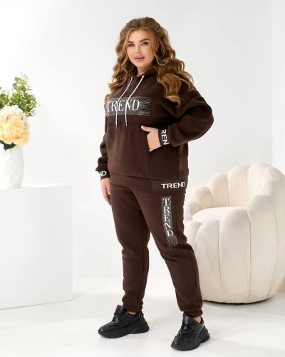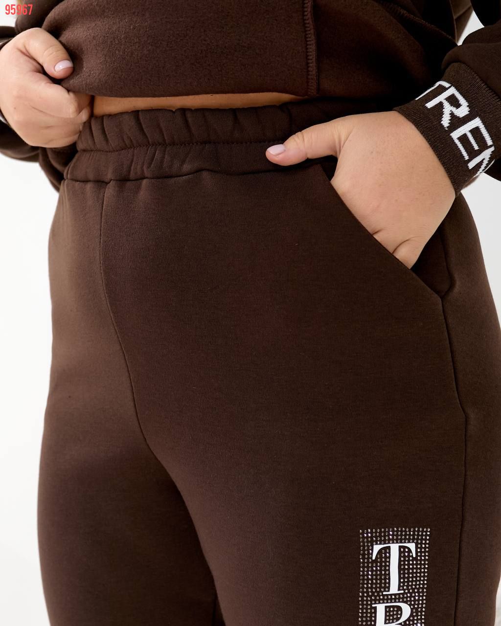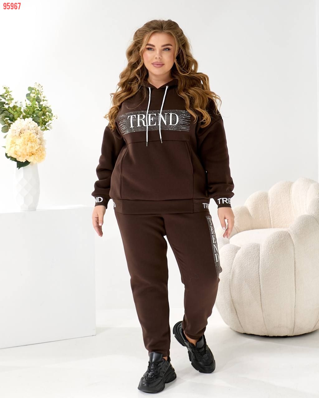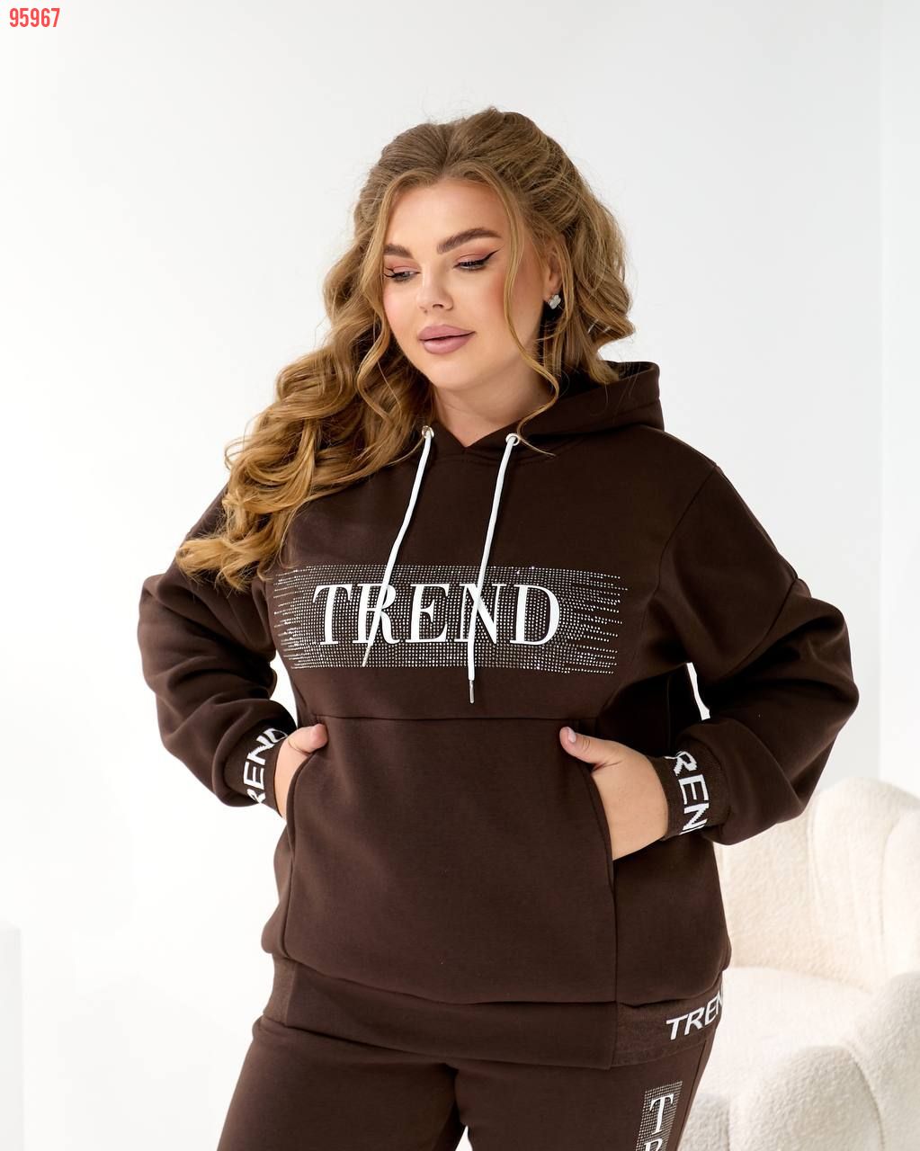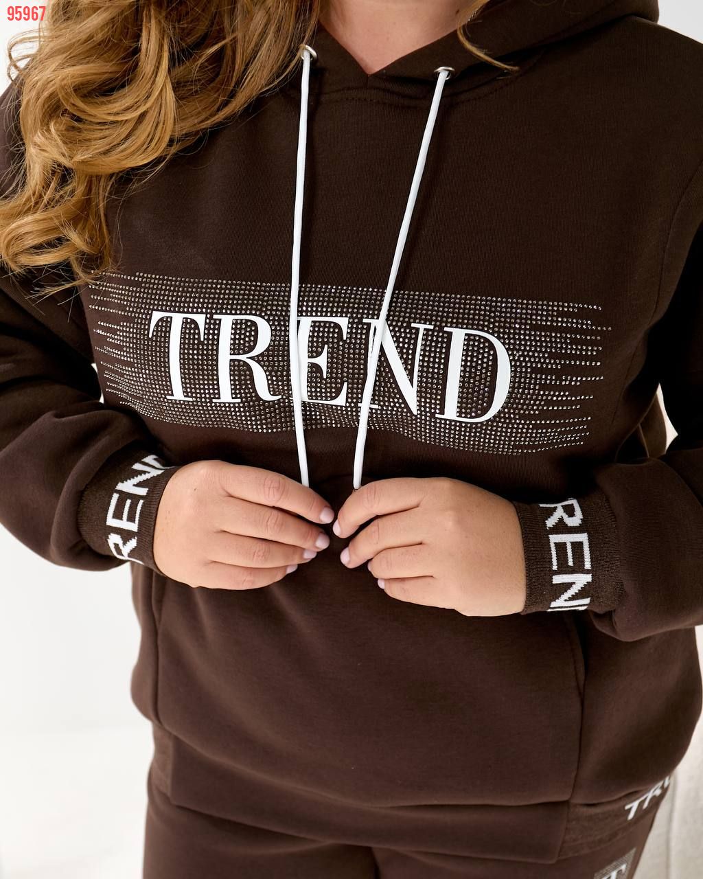 Будь завжди в «Тренді». Худі Oversize з капюшоном та яскравим акцентом: принт TREND з мерехтливими стразами/блиском (видно на фото!) + Джогери з м'якої тринитки на флісі!