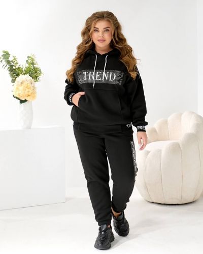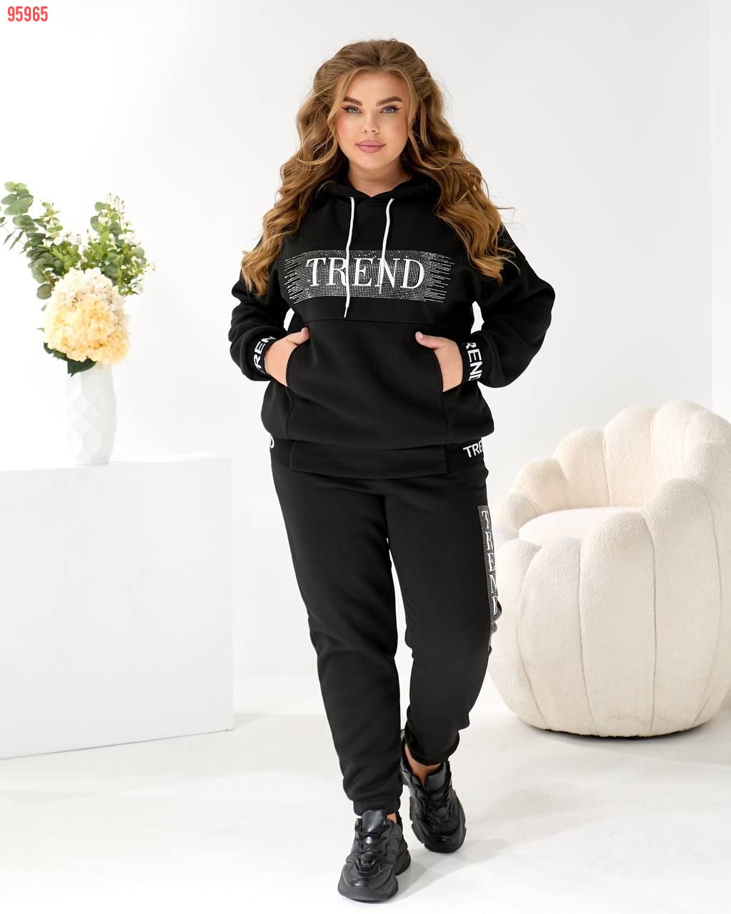 Будь завжди в «Тренді». Худі Oversize з капюшоном та яскравим акцентом: принт TREND з мерехтливими стразами/блиском (видно на фото!) + Джогери з м'якої тринитки на флісі!