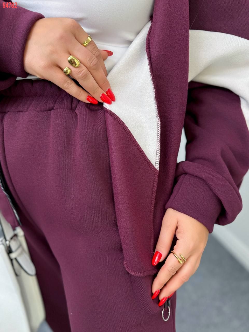 Низ - штани вільного крою з того ж матеріалу, на гумці, що забезпечує комфорт та зручну посадку. Костюм стильний та затишний – ідеально підходить для повсякденних прогулянок, відпочинку чи casual-образів.