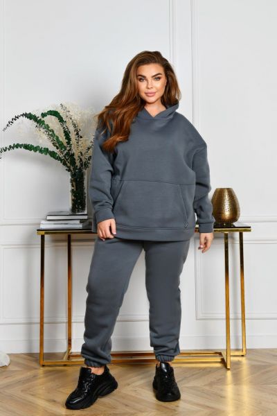 Худі з капюшоном, силует прямий вільний. Лінія плеча спущена. Рукави на манжетах. На передній полочці кишеня «кегуру».