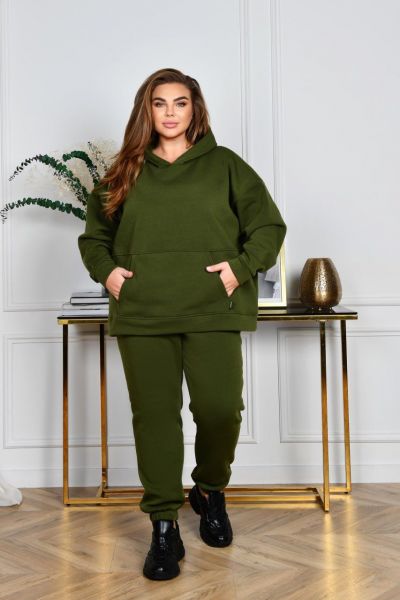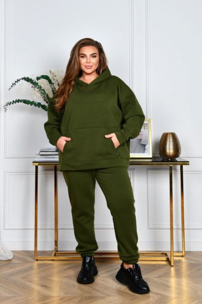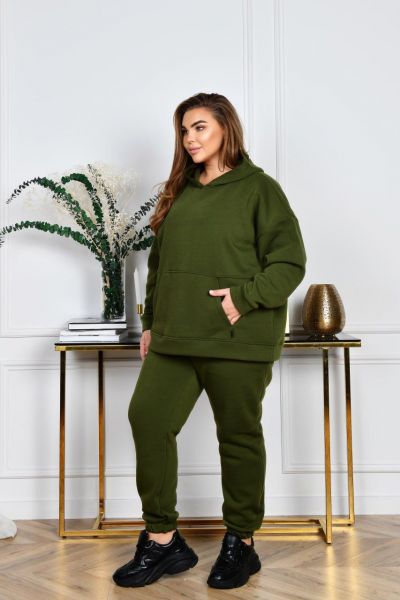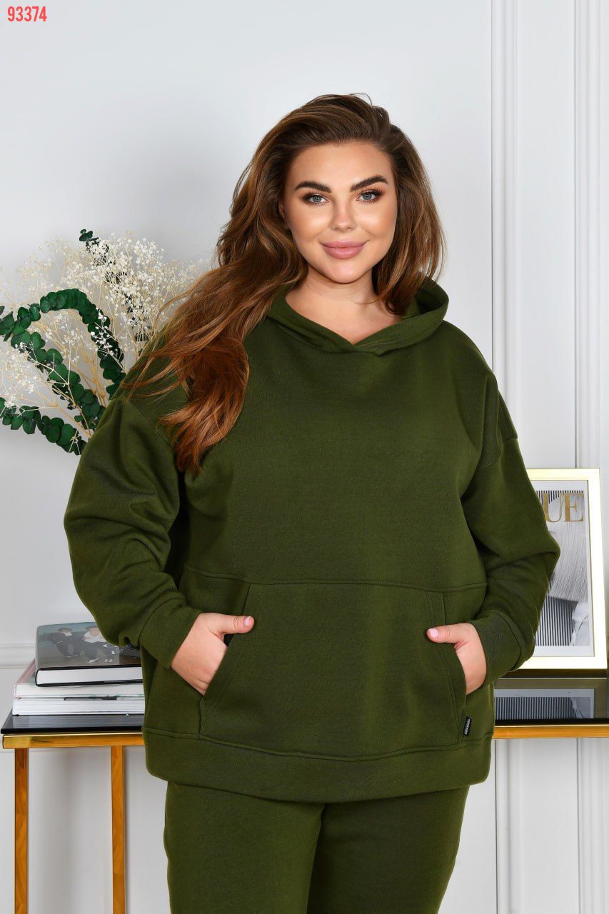 Худі з капюшоном, силует прямий вільний. Лінія плеча спущена. Рукави на манжетах. На передній полочці кишеня «кегуру».
