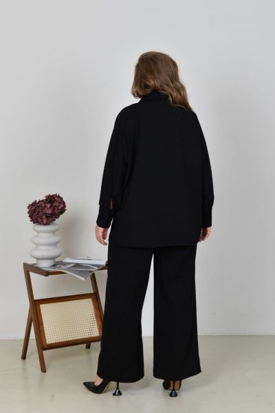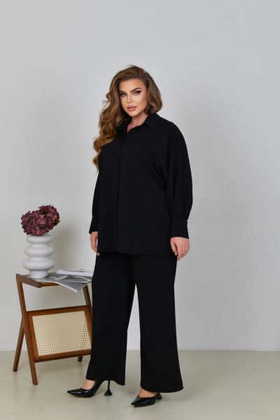 Сорочка вільного прямого силуету, комірець стояче-відкладений. Застібається на гудзики по передній планці. З боків невеликі розрізи. Рукав довгий, на манжеті, застібається на гудзик.