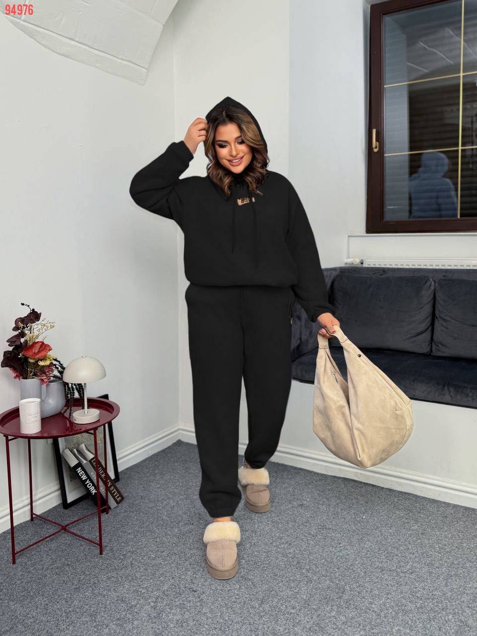 Стильний спорт костюм для прогулянок.Оверсайз.Худі регулюється затяжками по низу.Завдяки цьому ви зможете носити його як подовженним так піднятим