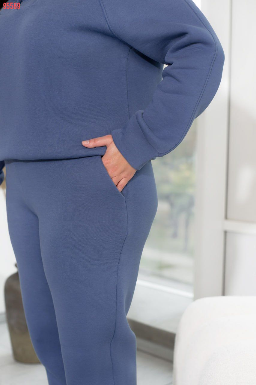 Теплий спортивний костюм із трьохнитки на флісі, який не кошлатиться, створений для максимального комфорту та затишку. Худі із капюшоном має дві кнопки на горловині, що надійно захищають від холоду та забезпечують додаткове тепло, прикриваючи шию. Довгі рукави з манжетами гарантують комфортну посадку та зберігають тепло. Штани з високою посадкою на гумці чудово підкреслюють талію, а манжети внизу забезпечують зручність та стиль. Модель також оснащена практичними боковими кишенями, які додають функціональності. Ідеальний варіант для прохолодної погоди та активного відпочинку.