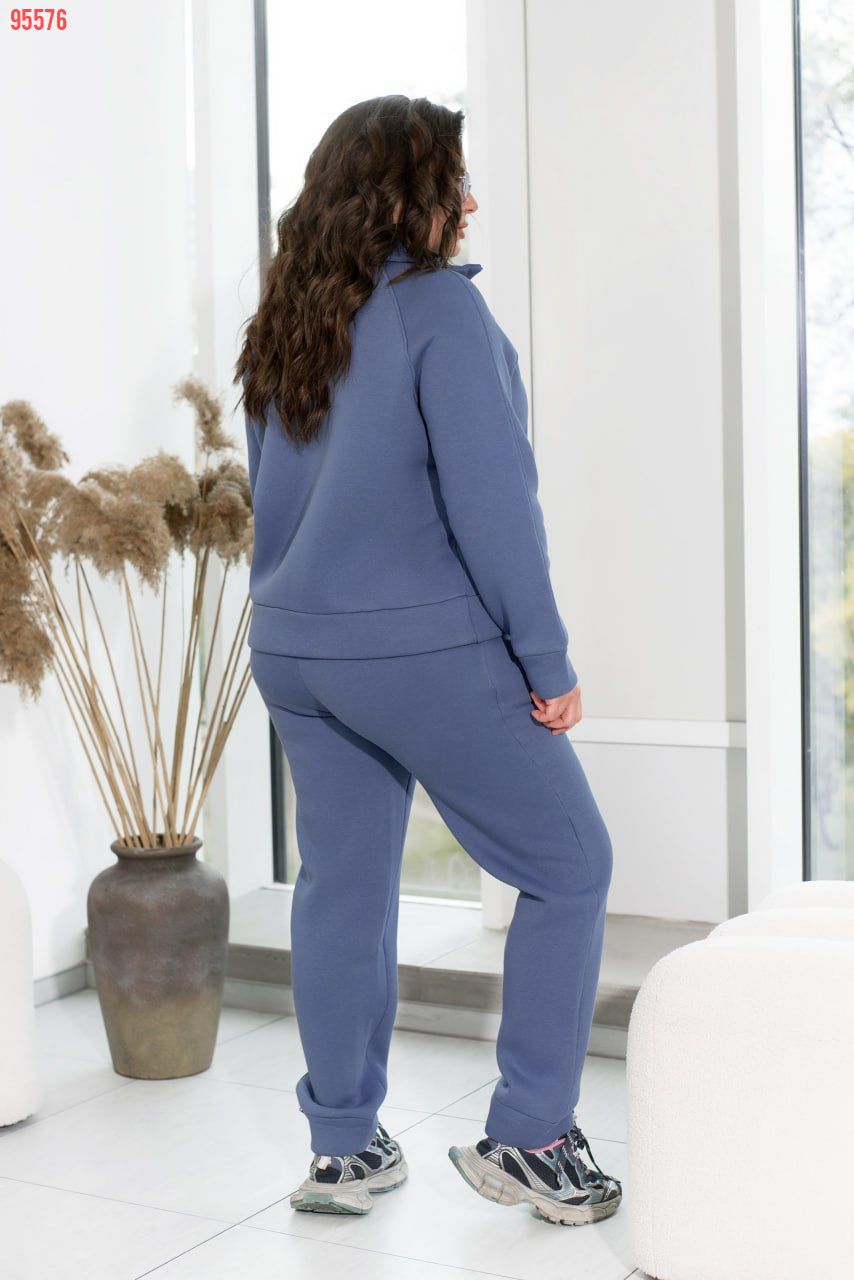 Спортивний костюм із трьохнитки на флісі забезпечує ідеальне поєднання тепла та комфорту в прохолодну погоду. Худі має зручну змійку і високу горловину, що ефективно захищає шию від холоду. Довгі рукави з манжетами забезпечують комфортну посадку та зберігають тепло. Штани з високою посадкою на еластичній гумці підкреслюють фігуру та забезпечують максимальну свободу рухів. Манжети внизу штанів додають стильного вигляду та додаткового тепла. Бокові кишені роблять костюм практичним і зручним для щоденного носіння або активного відпочинку.