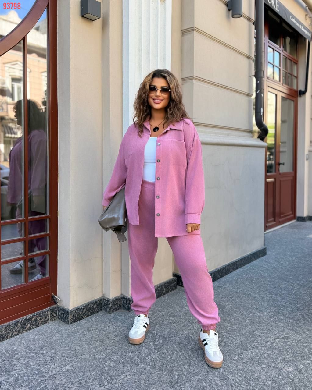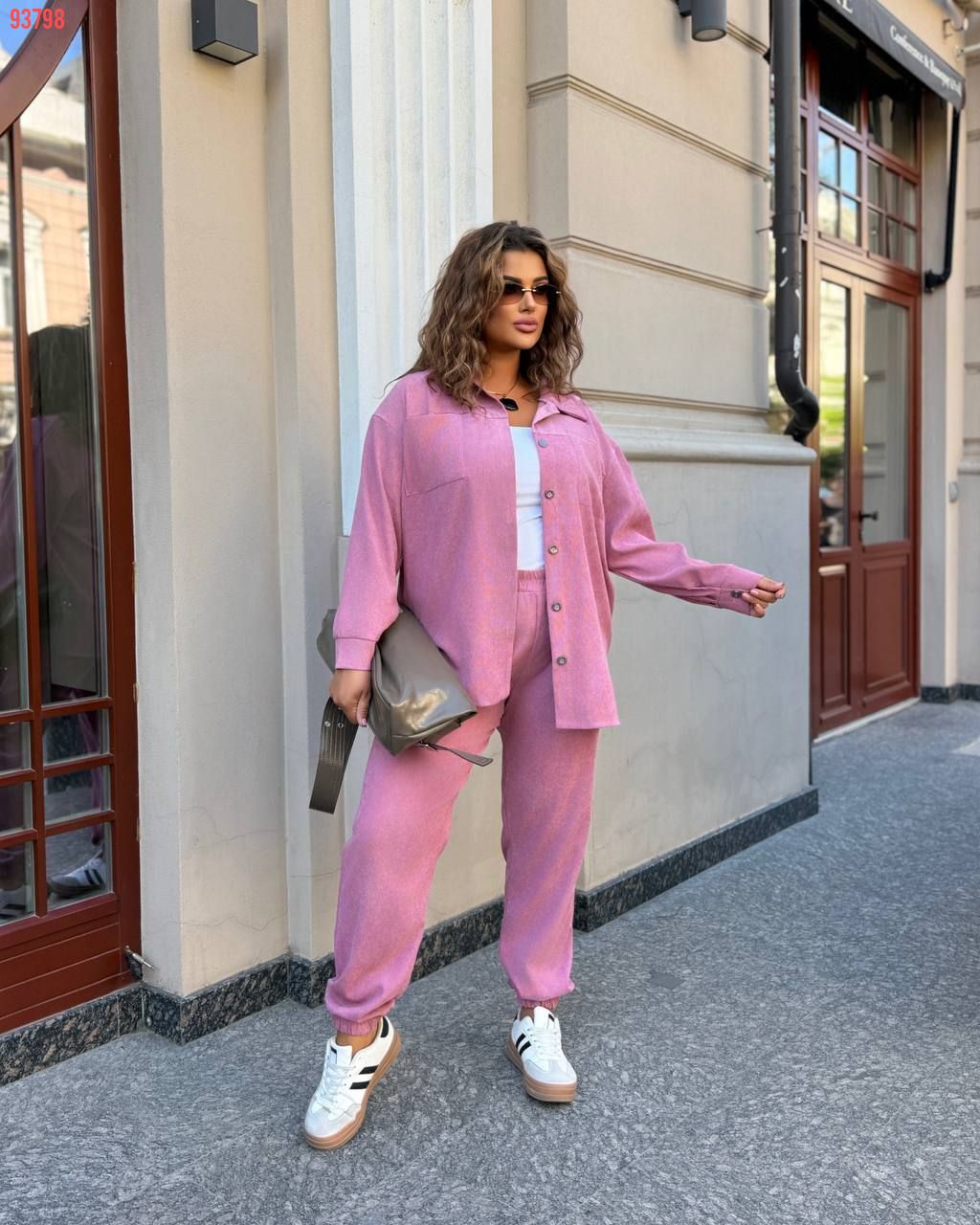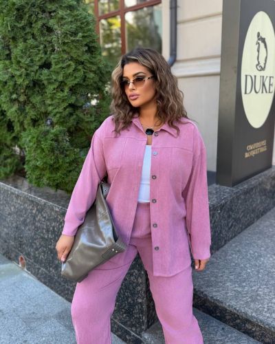 Костюм з м'якого мікровельвету великих розмірів – це ідеальне поєднання стилю та комфорту. Тканина з делікатною фактурою виглядає благородно і дорого, і при цьому залишається приємною до тіла і практичною в носінні. Мікровельвет м'яко тримає форму, не сковує рухів і дарує відчуття затишку протягом усього дня.