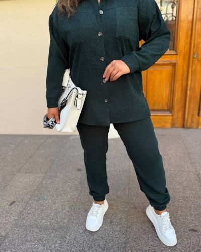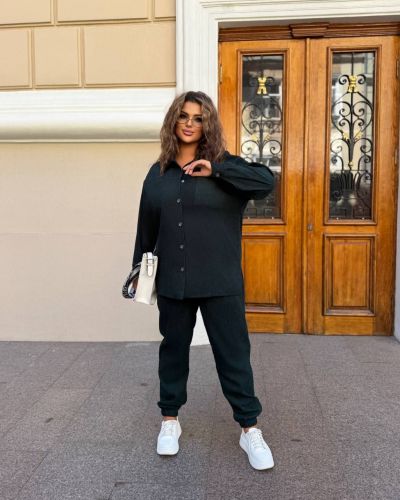 Костюм з м'якого мікровельвету великих розмірів – це ідеальне поєднання стилю та комфорту. Тканина з делікатною фактурою виглядає благородно і дорого, і при цьому залишається приємною до тіла і практичною в носінні. Мікровельвет м'яко тримає форму, не сковує рухів і дарує відчуття затишку протягом усього дня.