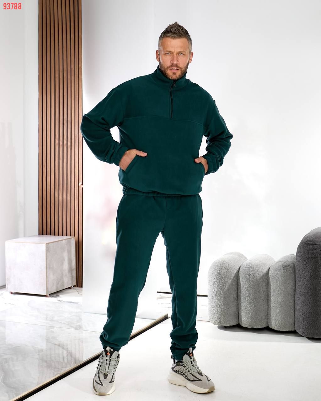 Чоловічий костюм з флісу – це втілення комфорту і стилю в повсякденному одязі. М'який фліс дбайливо зберігає тепло, дозволяючи шкірі дихати, а сучасний крій підкреслює мужність і свободу рухів. Костюм ідеально підходить як для прогулянок у прохолодну погоду, так і для домашнього затишку. Лаконічний дизайн робить його універсальним рішенням: він однаково органічно виглядає і в розслабленому, і в більш активному образі.
