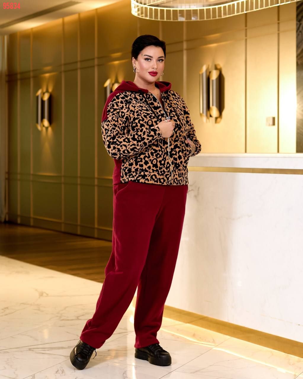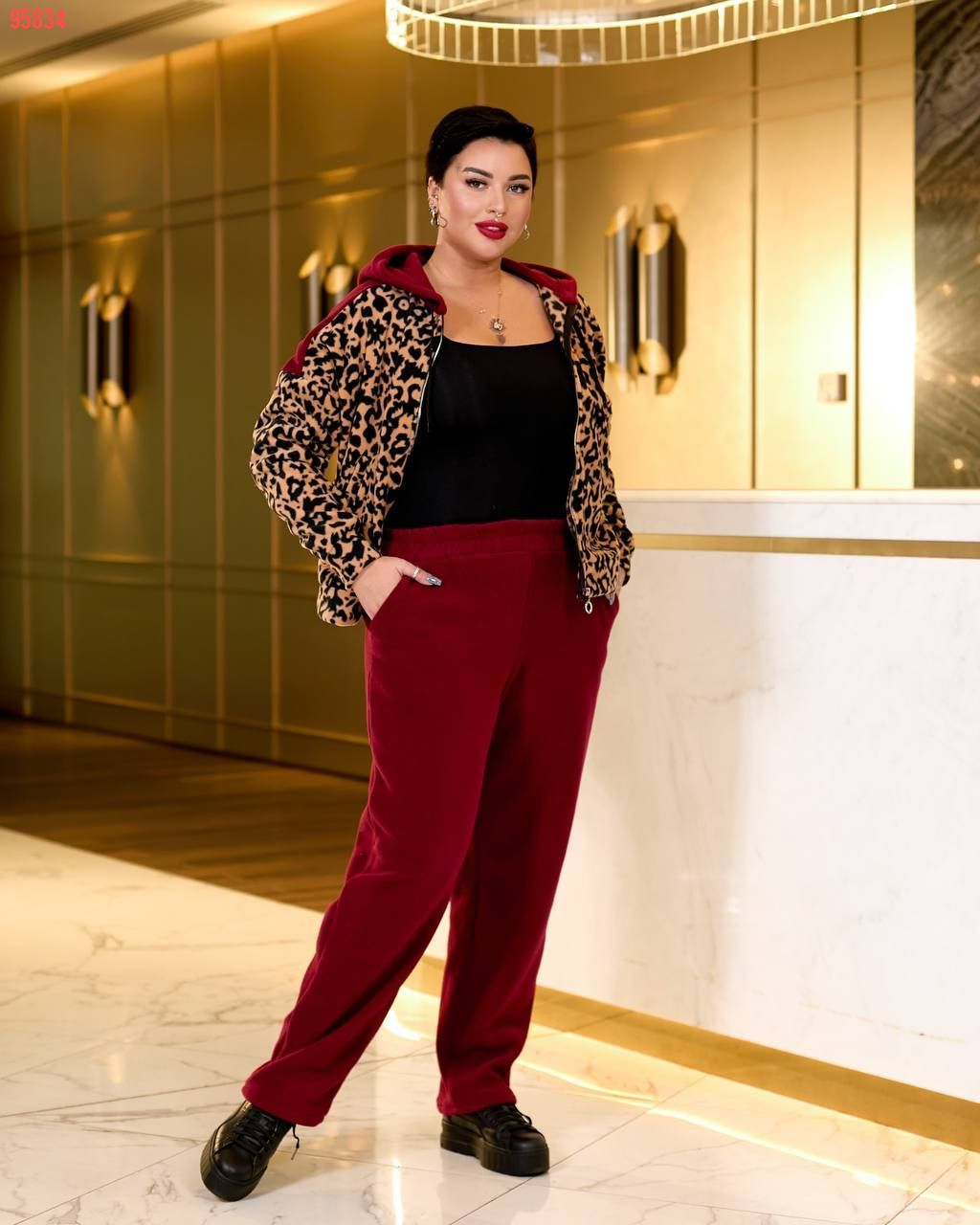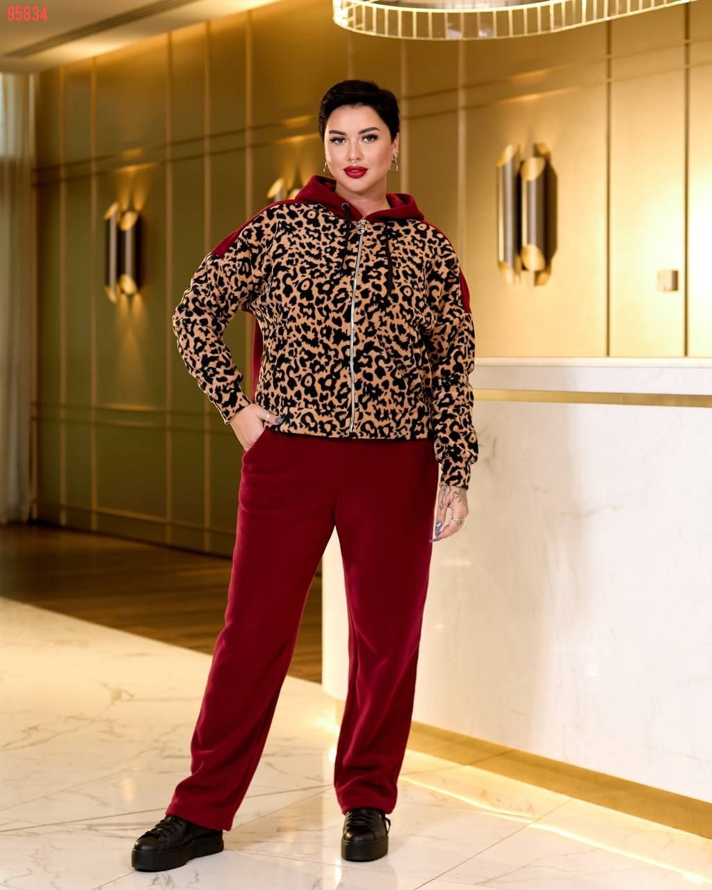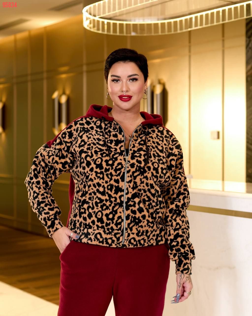 Зустрічай ідеальний комплект для затишку й яскравих образів! М’який фліс приємно гріє, даруючи відчуття тепла навіть у найпохмуріші дні. Ефектний леопардовий принт додає впевненості та драйву, а зручний крій дозволяє почуватися максимально комфортно вдома, у подорожі чи на прогулянці. Особливості надзвичайно м’який і теплий фліс; стильний леопардовий візерунок; еластичні манжети та пояс для зручної посадки; універсальний варіант для дому, спорту чи casual-луку.