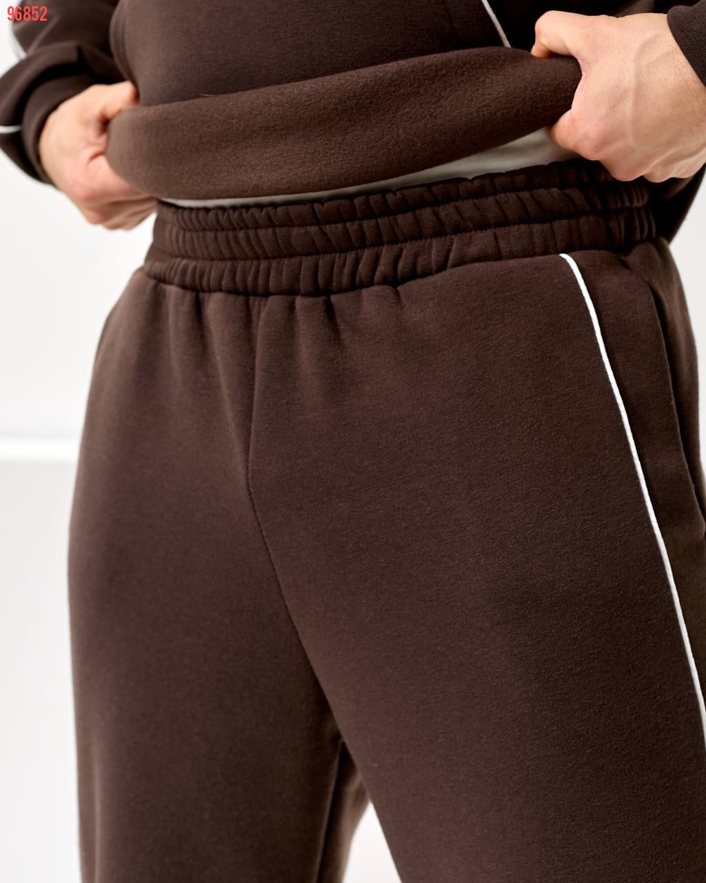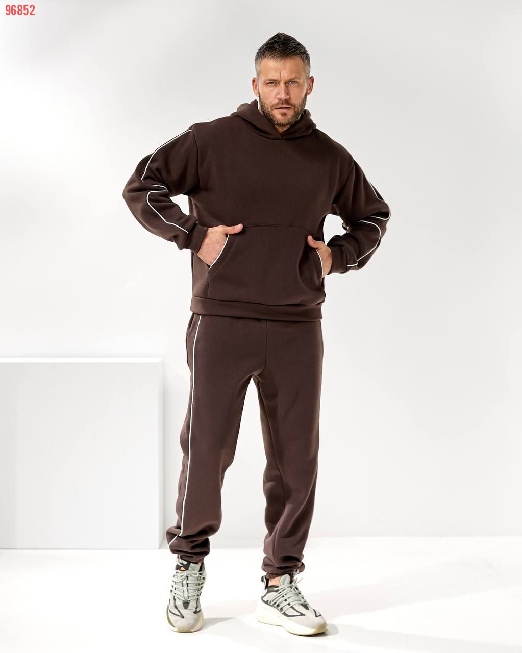 Чоловічий костюм з трьох нитки – це втілення комфорту і стилю в повсякденному одязі. М'яка тканина дбайливо зберігає тепло, дозволяючи шкірі дихати, а сучасний крій підкреслює мужність і свободу рухів. Костюм ідеально підходить як для прогулянок у прохолодну погоду, так і для домашнього затишку. Лаконічний дизайн робить його універсальним рішенням: він однаково органічно виглядає і в розслабленому, і в більш активному образі.