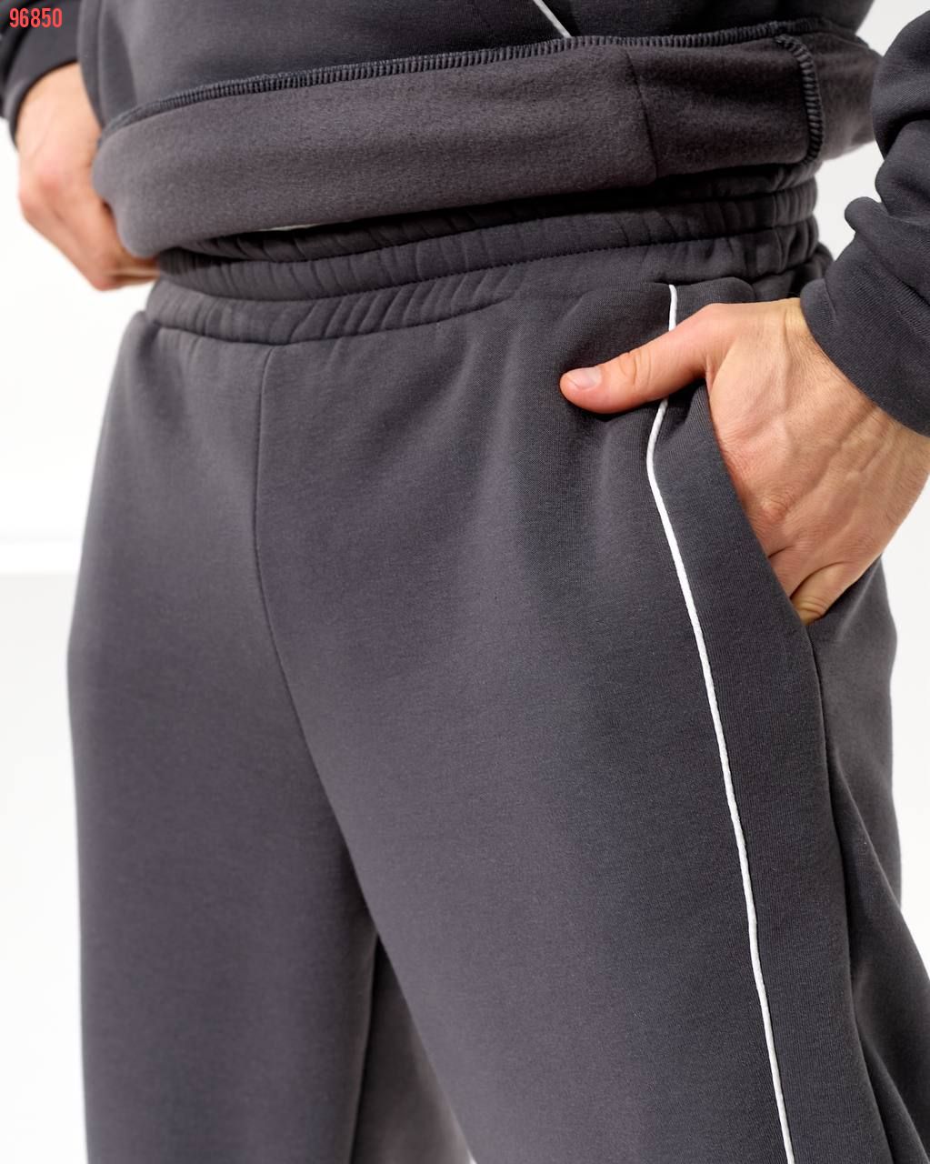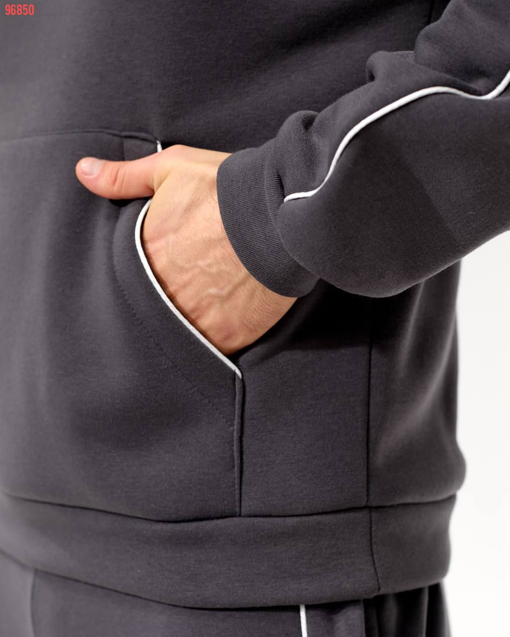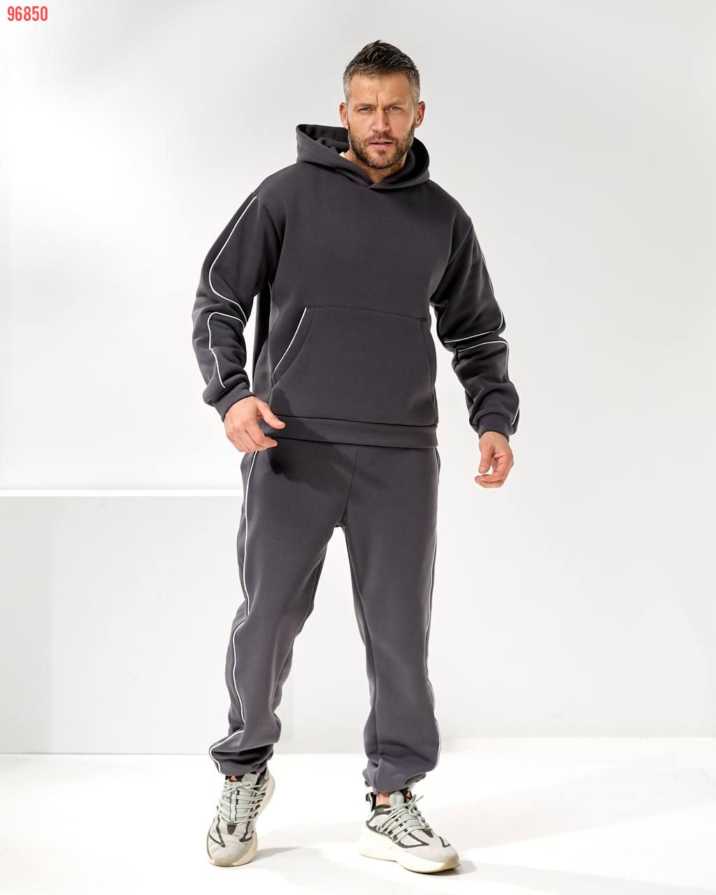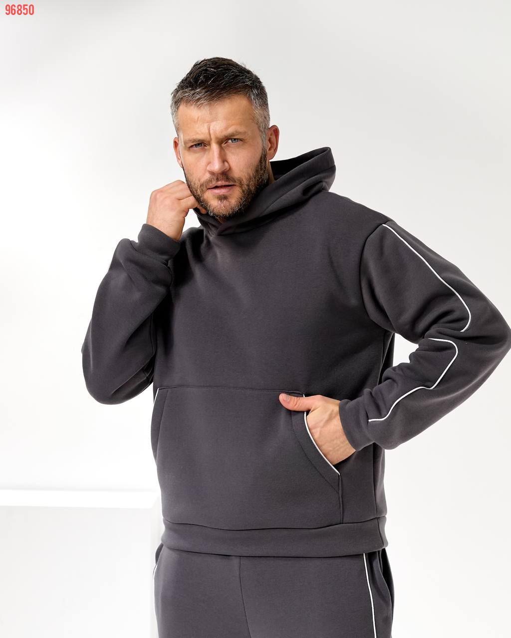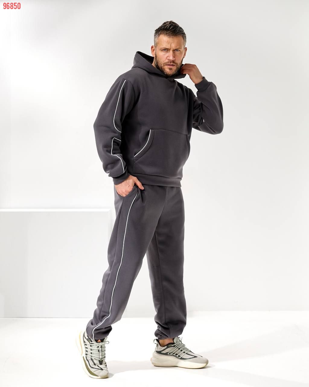 Чоловічий костюм з трьох нитки – це втілення комфорту і стилю в повсякденному одязі. М'яка тканина дбайливо зберігає тепло, дозволяючи шкірі дихати, а сучасний крій підкреслює мужність і свободу рухів. Костюм ідеально підходить як для прогулянок у прохолодну погоду, так і для домашнього затишку. Лаконічний дизайн робить його універсальним рішенням: він однаково органічно виглядає і в розслабленому, і в більш активному образі.