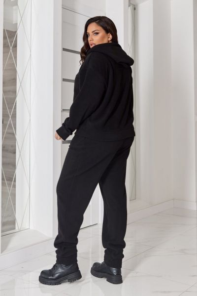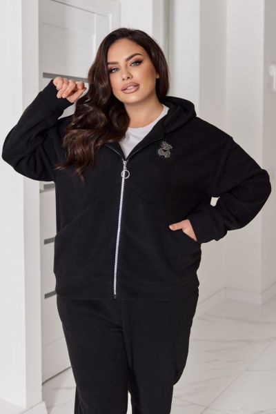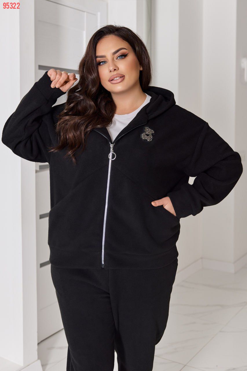 Теплий костюм з якісного флісу полар: штани зі зручними кишенями середньої посадки на резинці, кофта на блискавці по всій довжині з прорізними кишенями. Декор на кофті – трендовий «ведмедик», що додає образу акцент.
