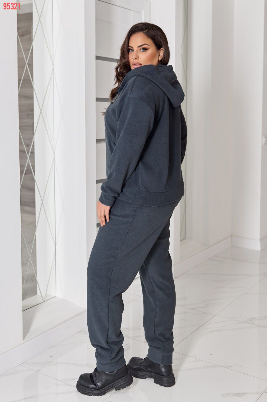 Фактичні заміри костюма: р.48-50: Кофта (пряма): ОГ = ОТ – 124 см, біцепс – 48 см, довжина – 65 см, рукав від горловини – 77 см Штани: ОТ (вільно/розтягнуто) – 72/94 см, ОС – 114 см, довжина (внутр./зовн. шов) – 110/78 см