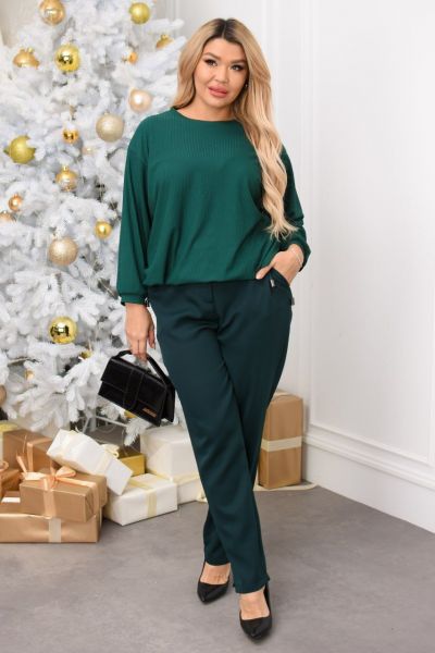 Вишуканий костюм-двійка для щоденних образів без компромісів. Вільна кофта з куліскою внизу дозволяє регулювати посадку – підкреслюй талію або носи більш розслаблено. Штани середньої посадки з еластичною резинкою ззаду на поясі дарують свободу рухів і акуратну посадку. Лаконічний силует легко поєднується з кросівками, лоферами чи черевиками.