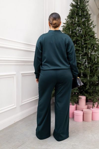 Вишуканий костюм-двійка для комфортних повсякденних образів. Кофта з італійського трикотажу – м’яка, еластична та приємна до тіла, застібається на трендові декоративні ґудзики й додає образу вишуканості. Штани середньої посадки на еластичному поясі забезпечують ідеальну посадку та свободу рухів, а шовні бокові кишені роблять модель ще практичнішою.