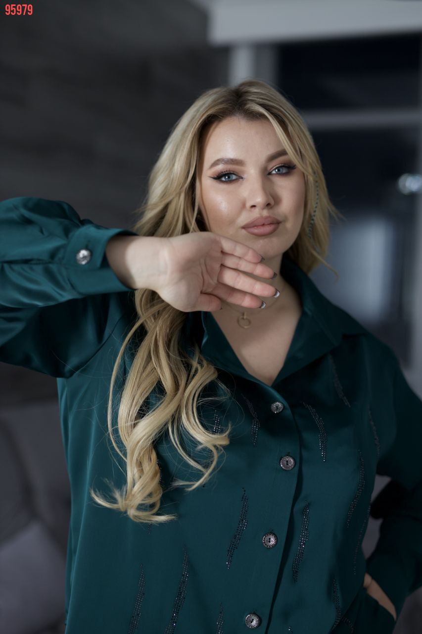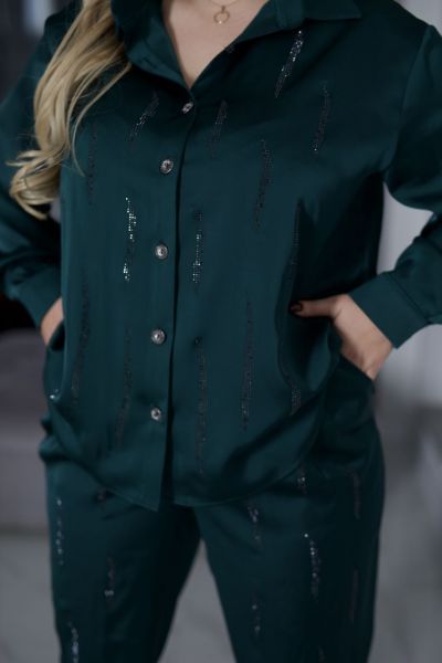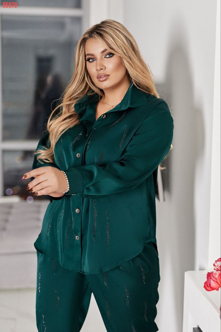 Костюм складається з подовженої сорочки та брюк , із тканини Армані Шовк Дабл високої якості.