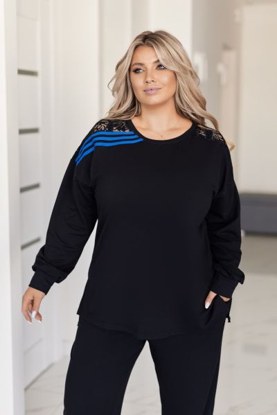 ●Світшот вільного крою з округлою горловиною та довгим рукавом на манжеті, по боках розрізи.