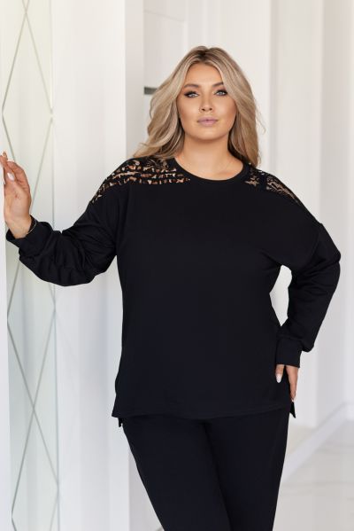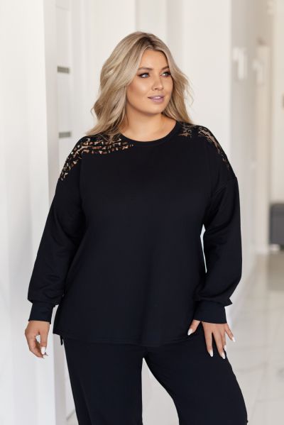 ●Світшот вільного крою з округлою горловиною та довгим рукавом на манжеті, по боках розрізи.