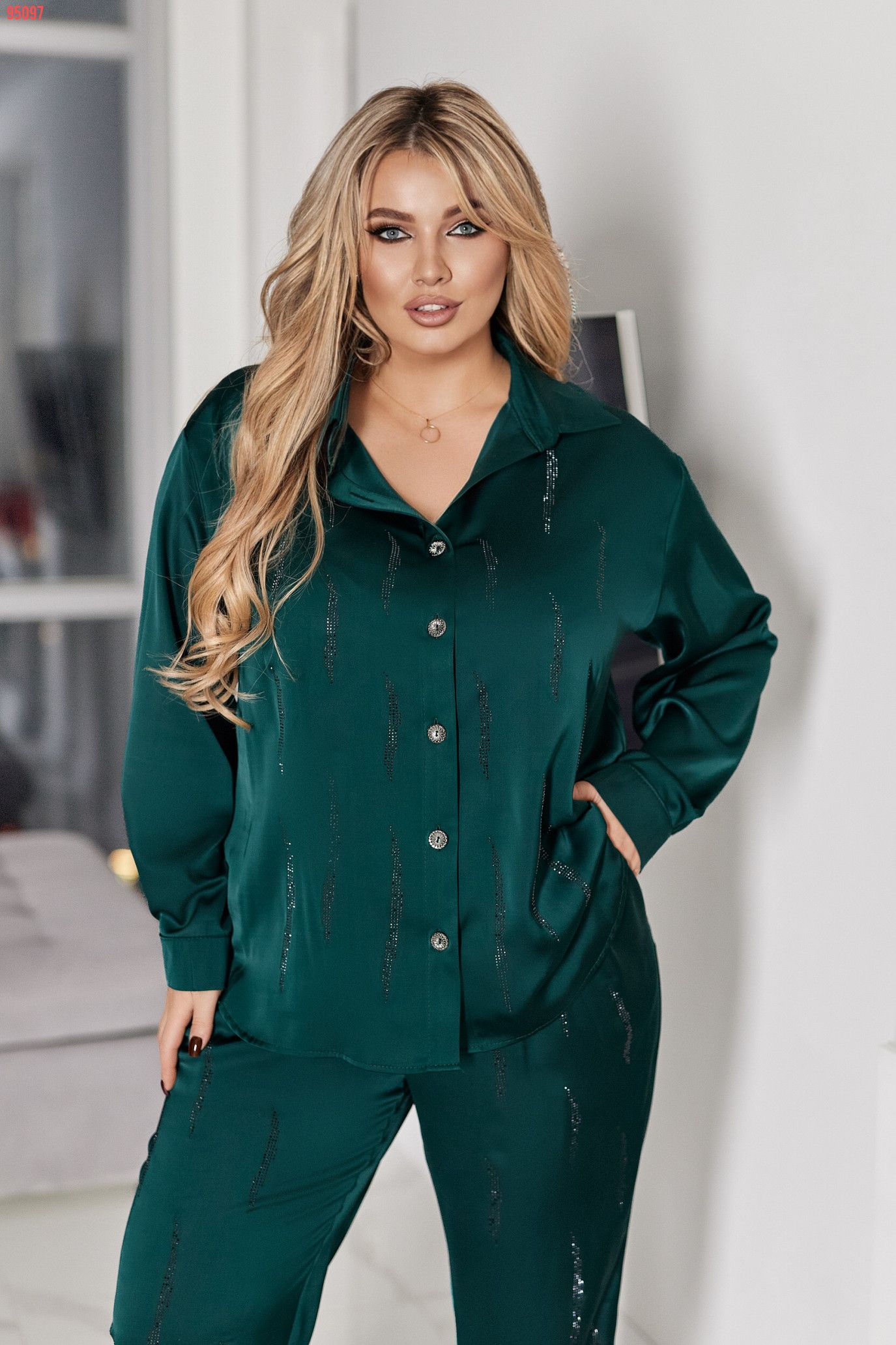 Костюм складається з подовженої сорочки та брюк , із тканини Армані Шовк Дабл високої якості.