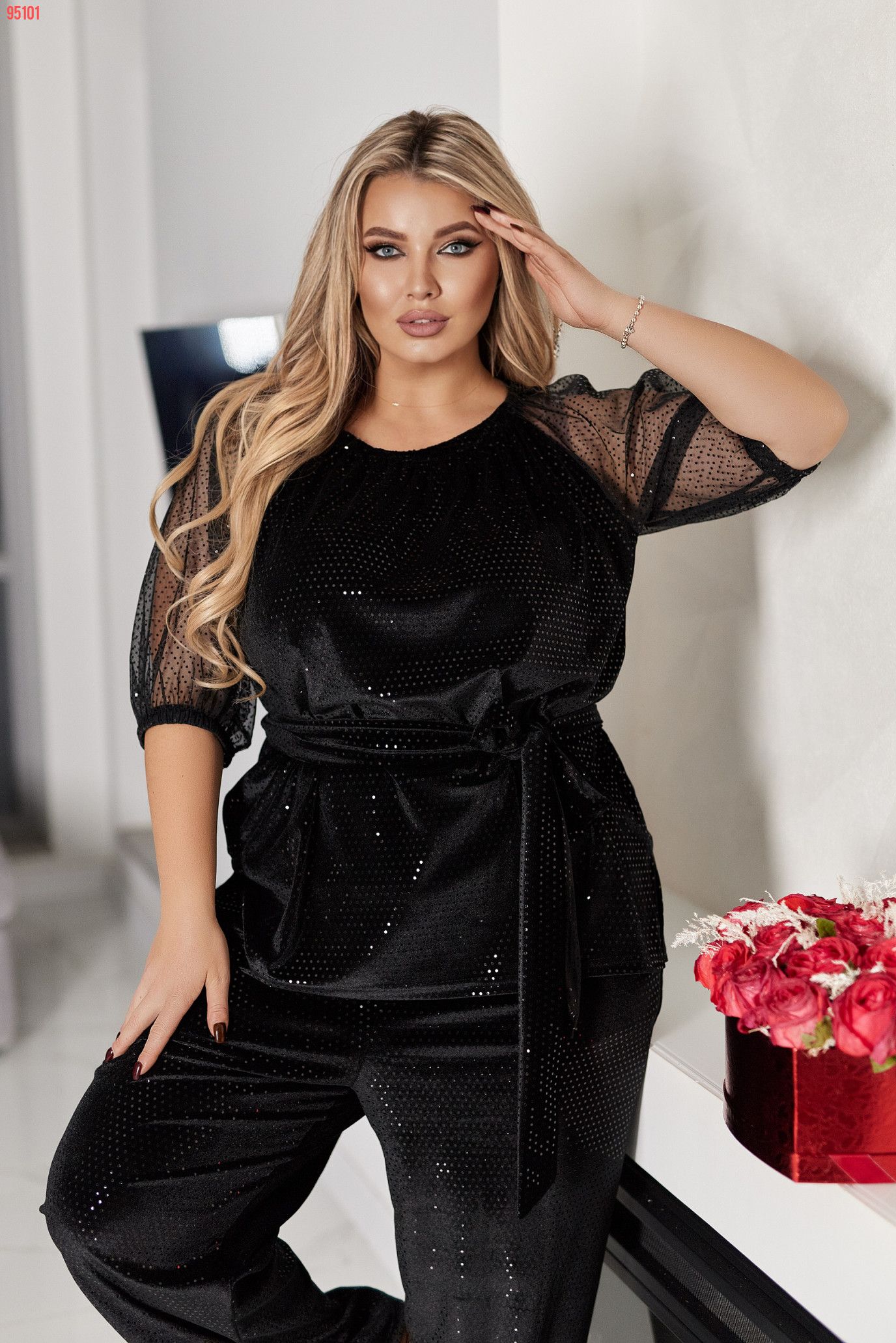 Велюр бархат з впаянною паєткою + сітка.