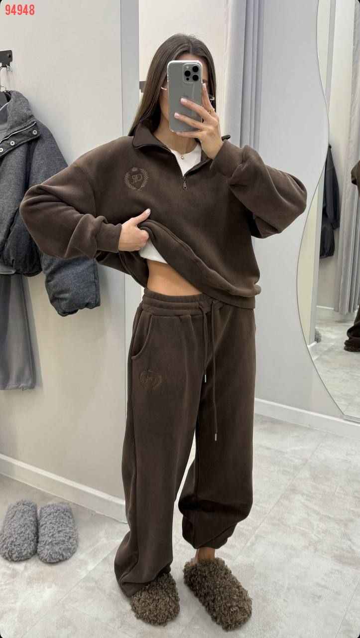 Костюм із двостороннього флісу - твій секрет комфорту й стилю в одному образі. Теплий, мʼякий і водночас суперстильний. Штани знизу можно носити джогерами та прямими, якісна вишивка.