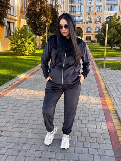 Бомбер з капюшоном на змійці з карманами, штани висока посадка з карманами, низ манжет на резинці