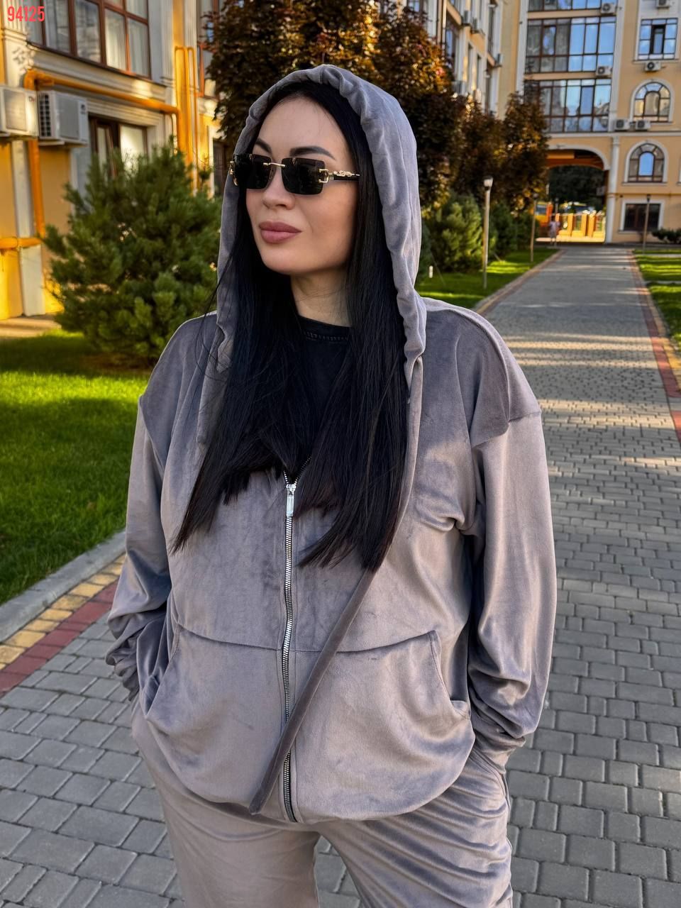 Бомбер з капюшоном на змійці з карманами, штани висока посадка з карманами, низ манжет на резинці Дуже зручний і комфортний
