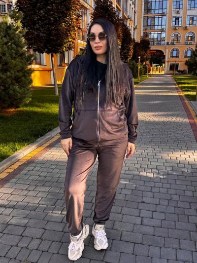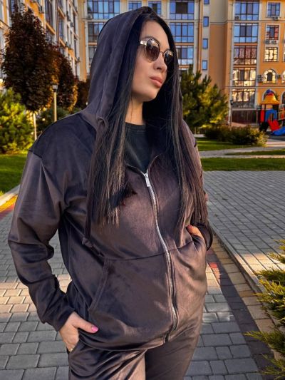 Бомбер з капюшоном на змійці з карманами, штани висока посадка з карманами, низ манжет на резинці