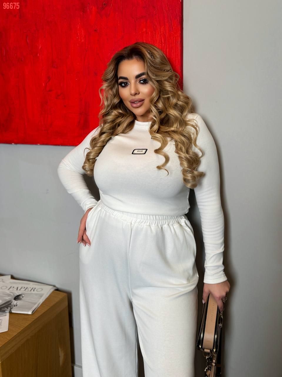 60-62 Топ: Ог 118 см, плече 14 см, довжина 65 см. Штани: 82-140 см, об 148 см, довжина 116/80 см.