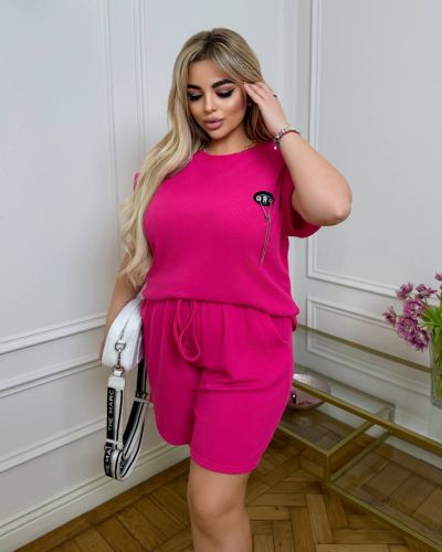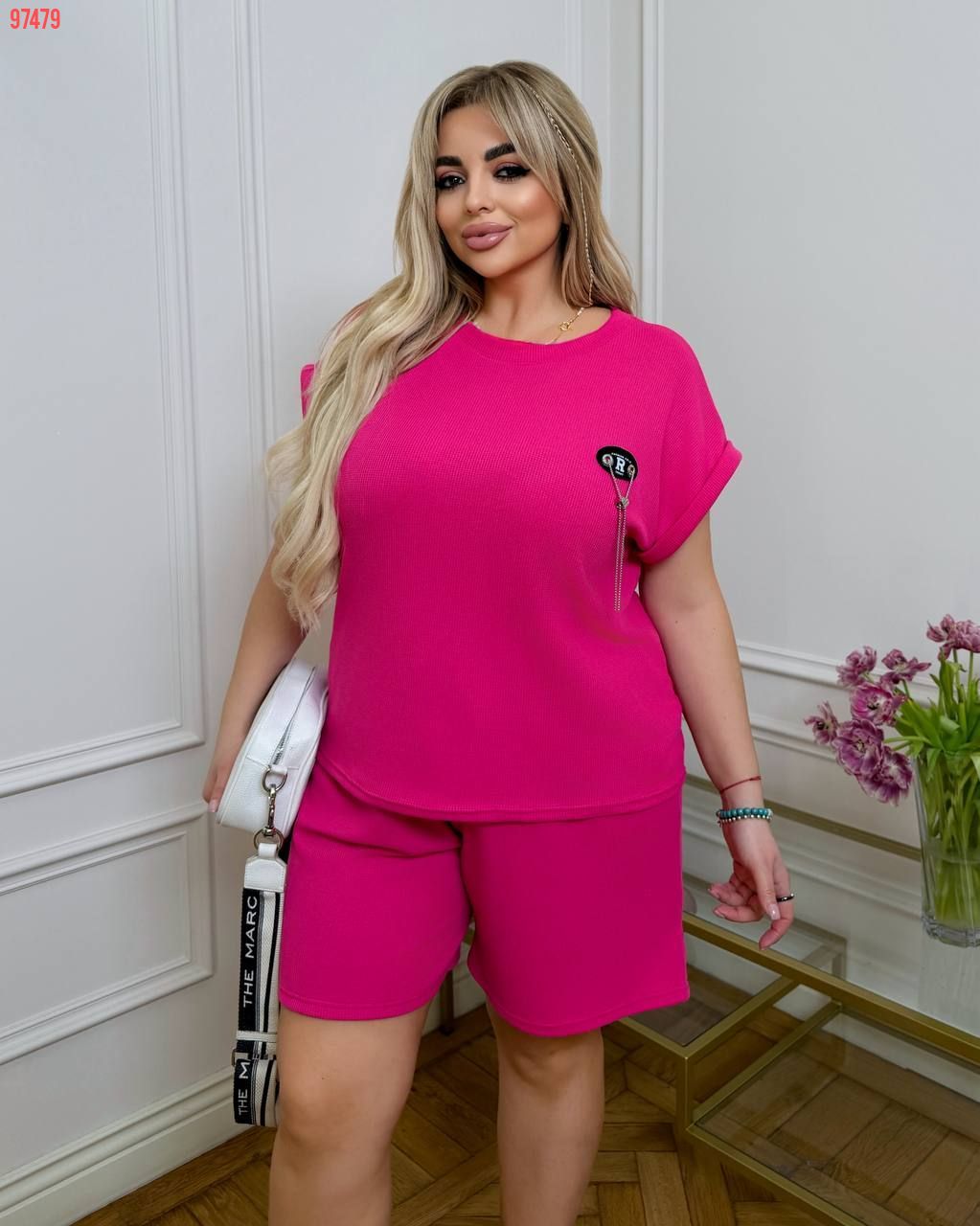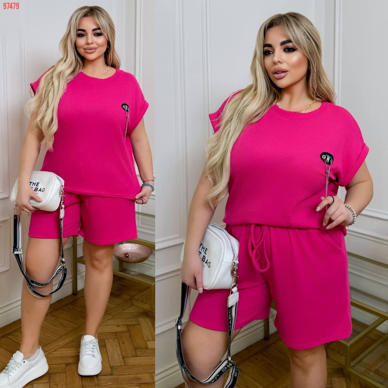 Костюм з трикотажу стрейч «вафелька»: футболка з манжетами на рукавах та Акс + шорти з високою посадкою на гумці, з кішкнями у бічних швах та шнурком на поясі
