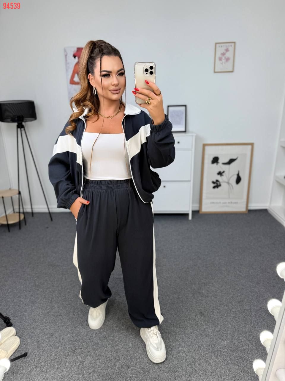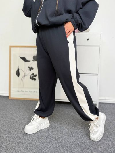 Спортивка по низу регулюється затяжками,що дає змогу носити її в різних варіантах.Джогери з високою посадкою та вільного крою,що робить їх мега комфортними.
