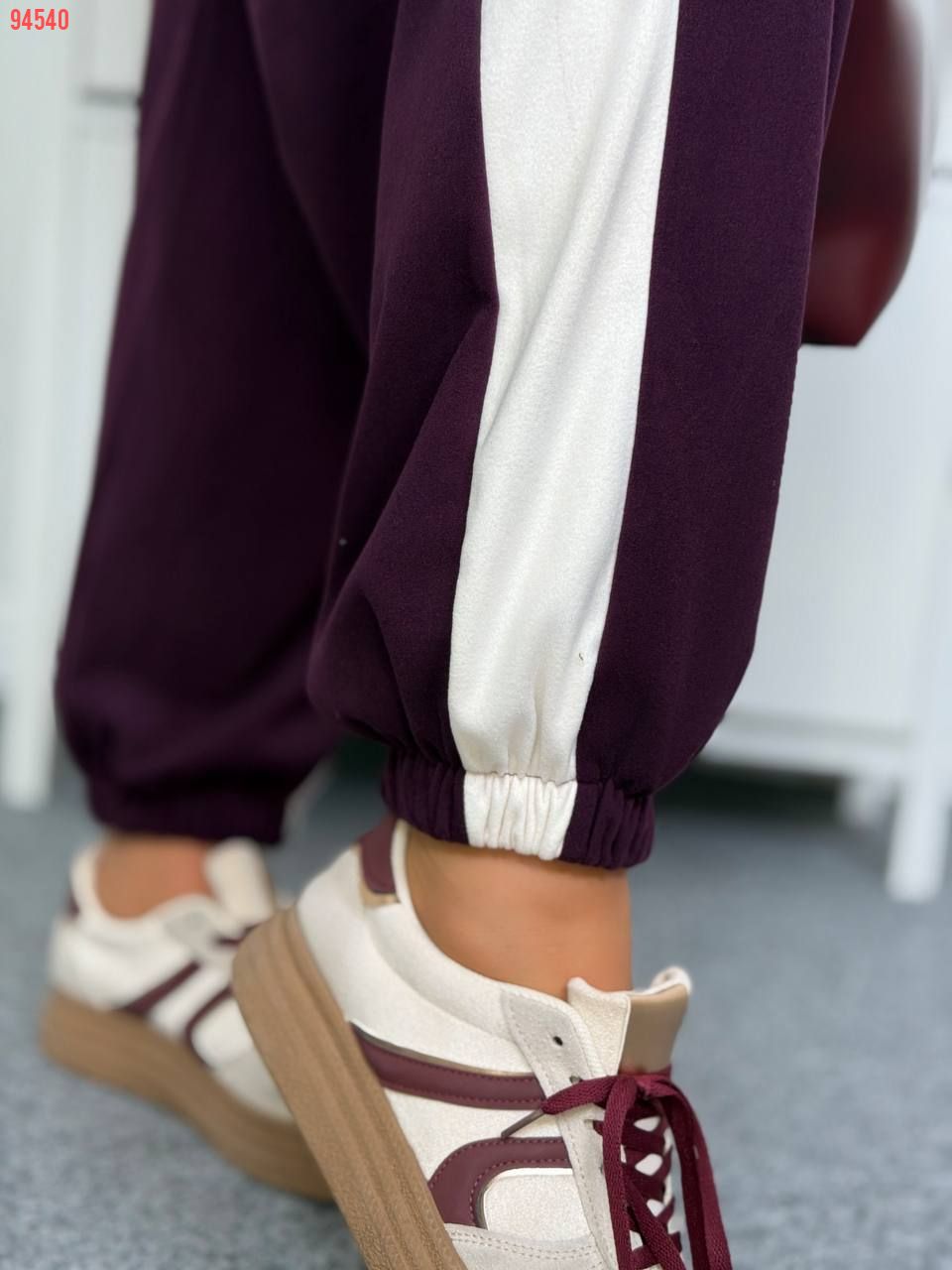 Спортивка по низу регулюється затяжками,що дає змогу носити її в різних варіантах.Джогери з високою посадкою та вільного крою,що робить їх мега комфортними.