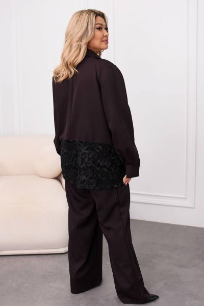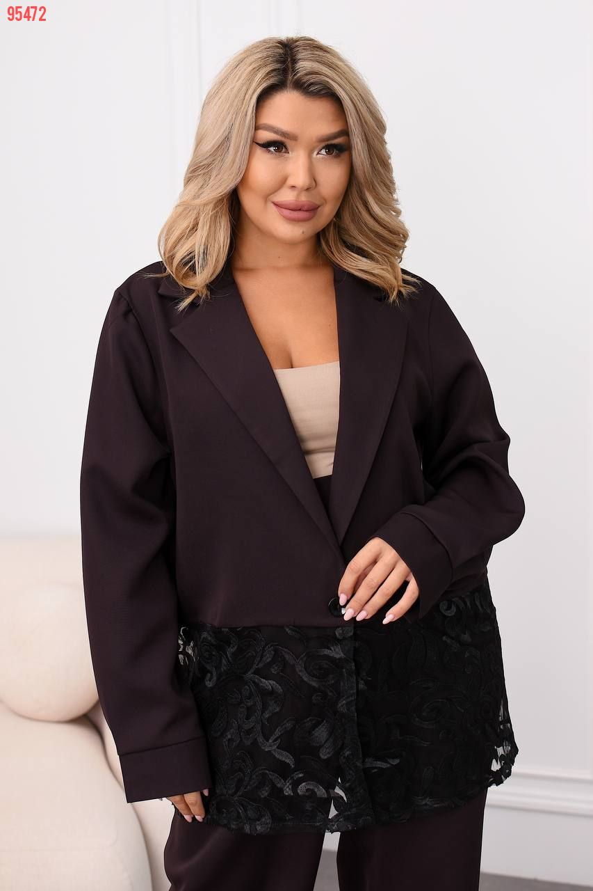 Стильний жіночий костюм .Подовжений піджак, прямого крою, з класичним коміром .Широкі штани. Цей костюм відмінно підійде для повсякденних, ділових та стильних образів, поєднуючи комфорт та елегантність