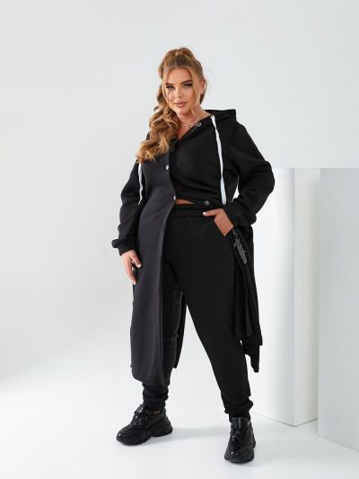 58-60 Довжина кофти 123см, довжина рукава – 66 см, Ог-136 см, довжина штанів-99 см, об-146 см, ОТ гумка-126 см.об'єм талії в кофті 131 см,об'єм стегон у кофті-136см