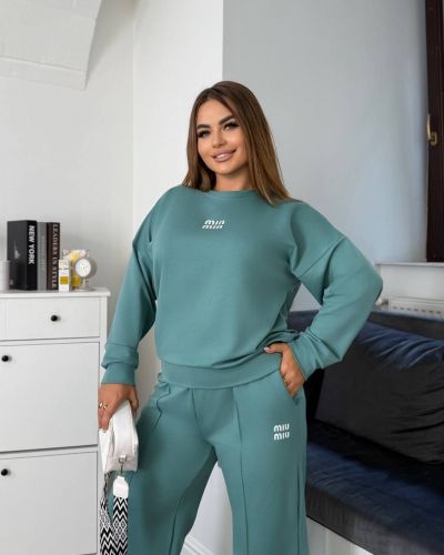 Довжина кофти 65 см., довжина брюк 104 см. Костюм повномiрний майже на розмiр, добре тягнеться.