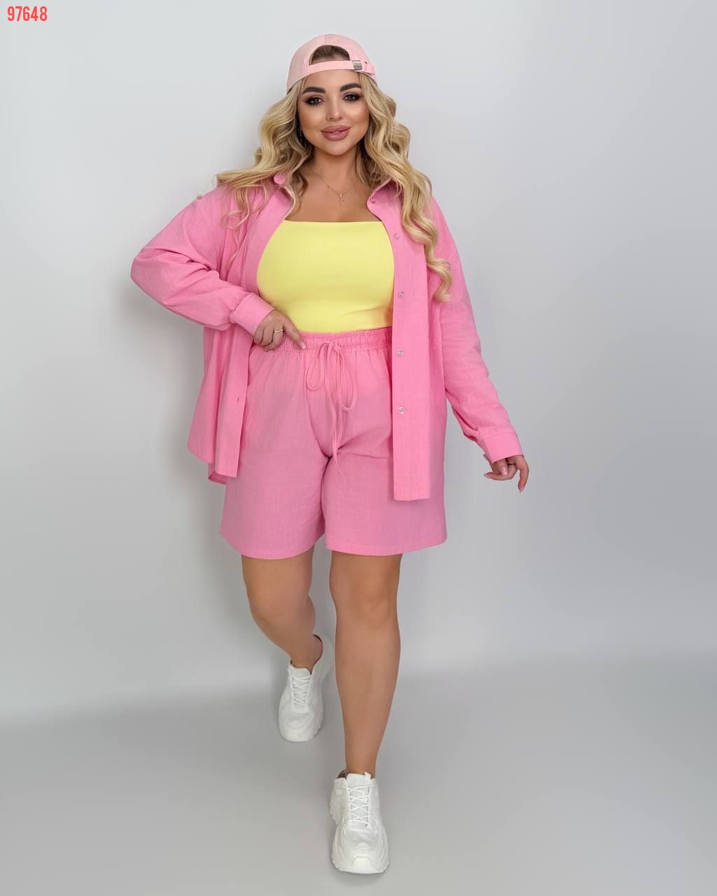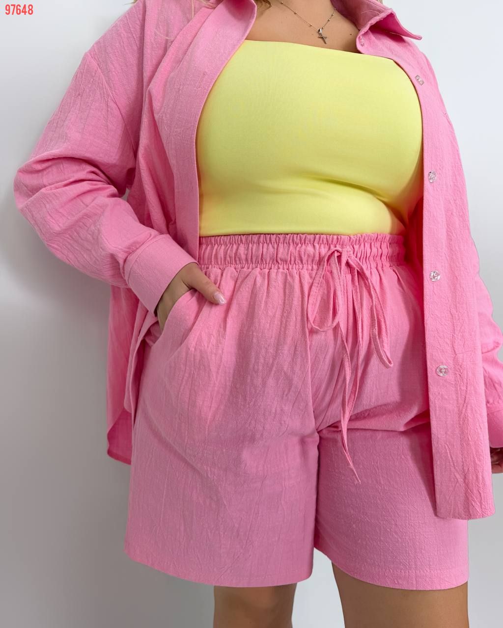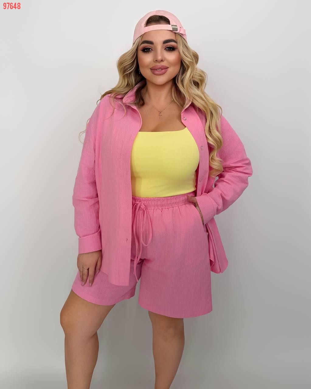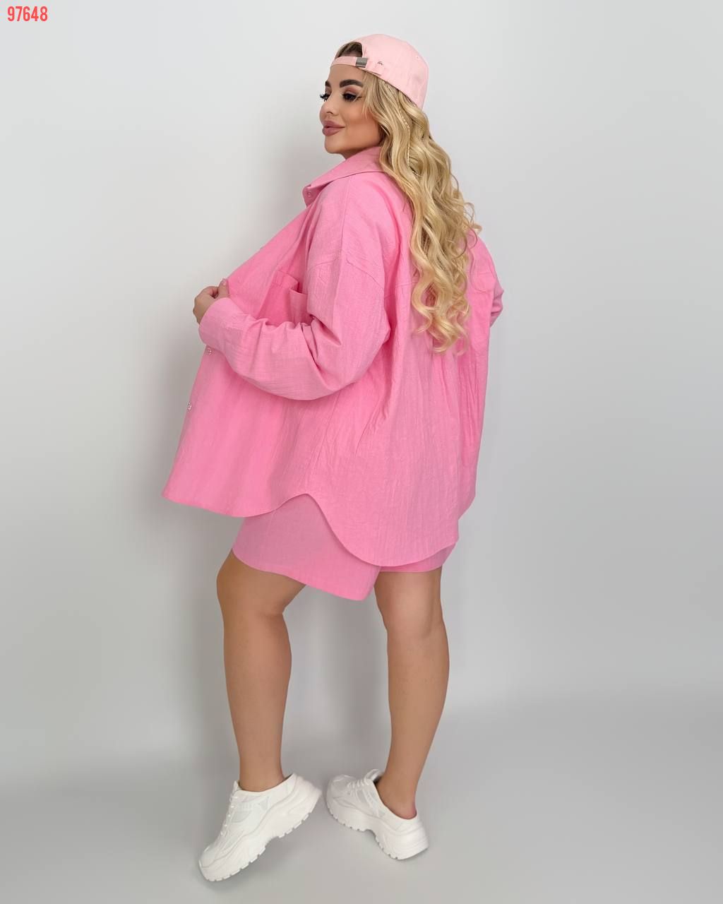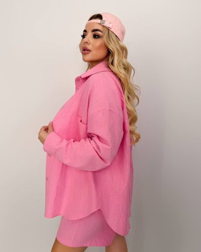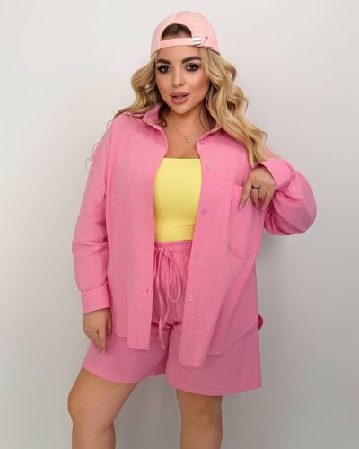 Костюм із жатого льону рожевий №97648