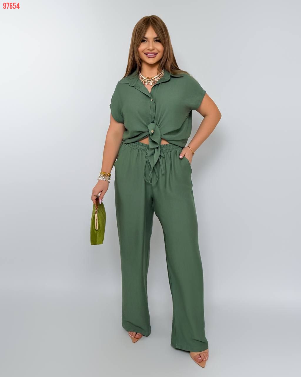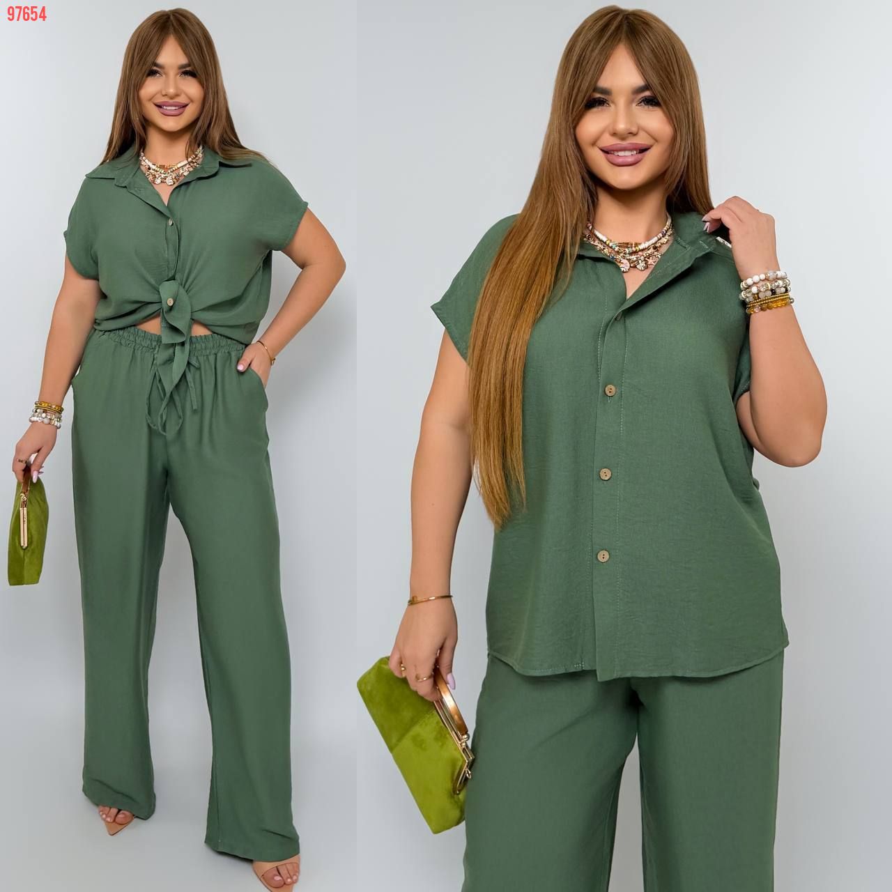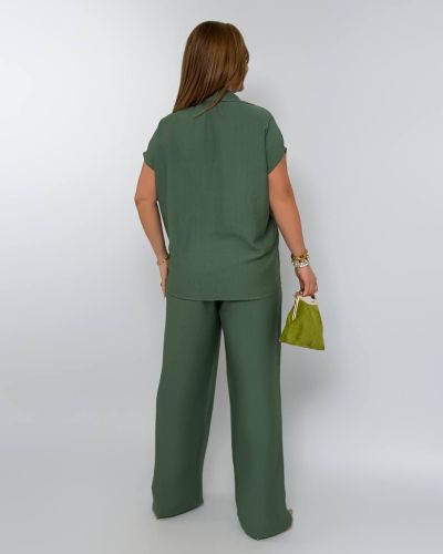 Костюм з легкого льону: штани з посадкою вище середнього на гумці та куліскою на поясі, з кишенями у бічних швах + сорочка на ґудзиках
